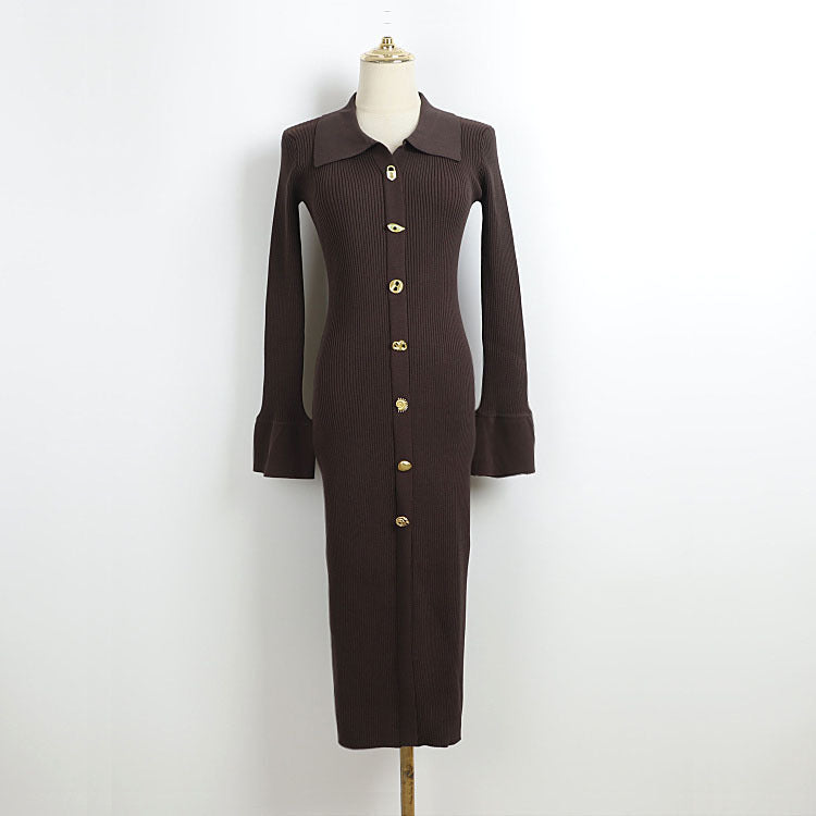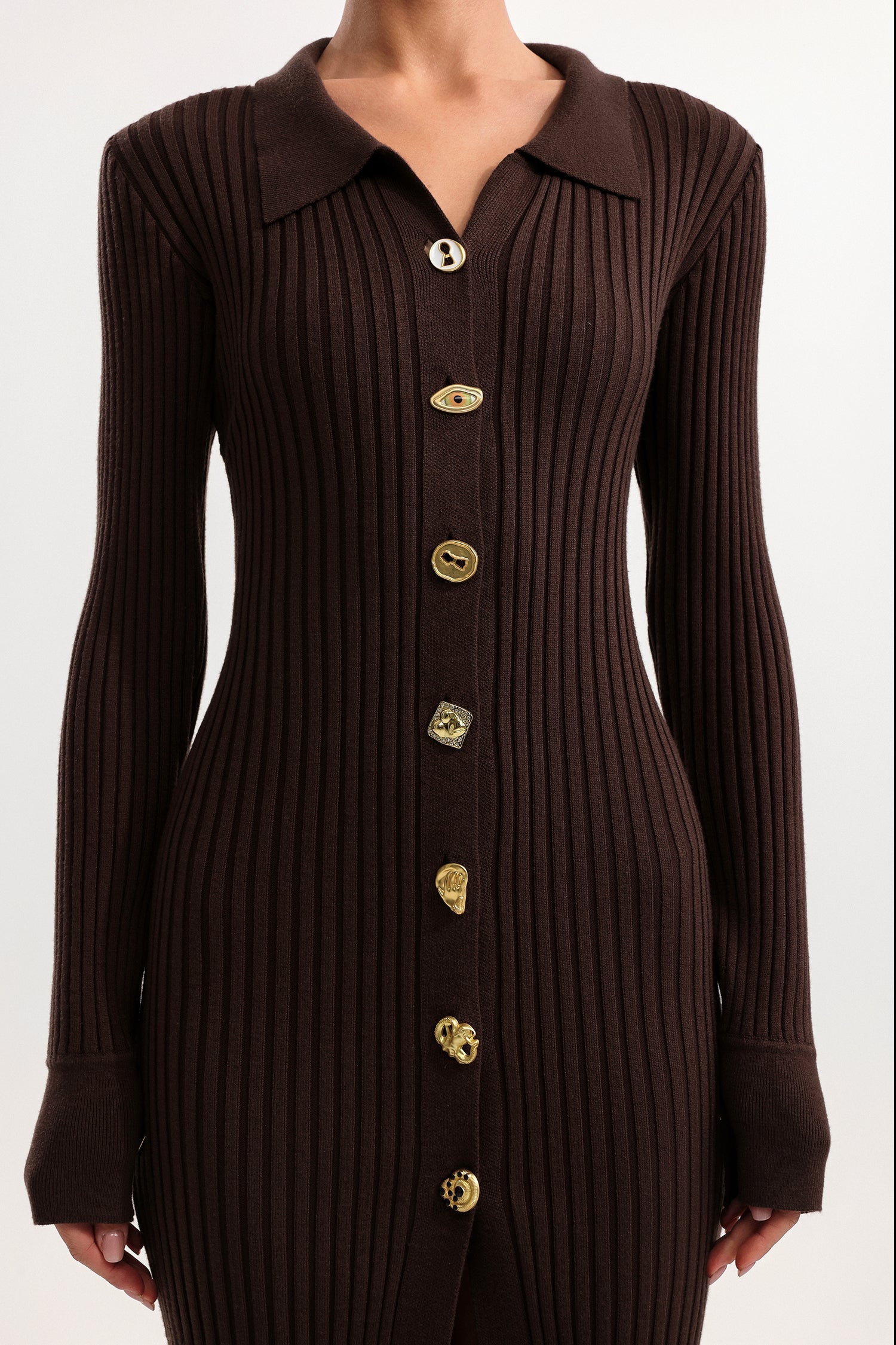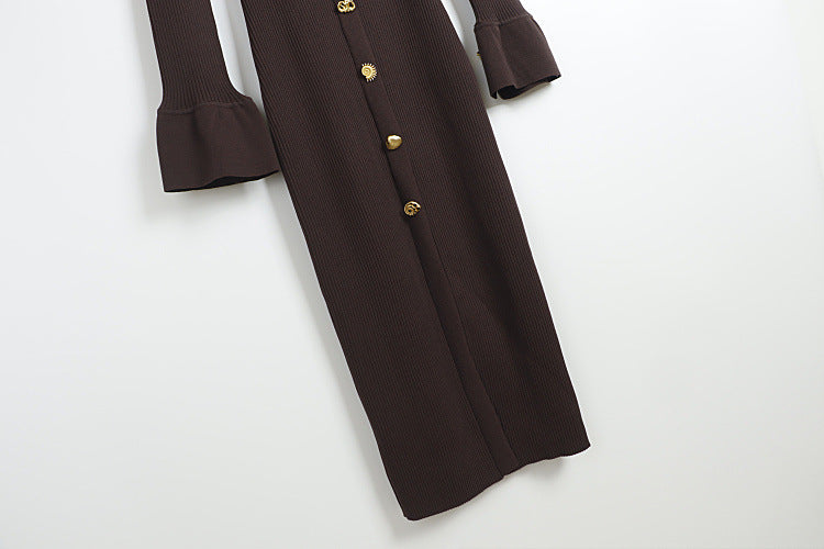 Duncan Contour V Neck Long Sleeve Knit Mini Dress