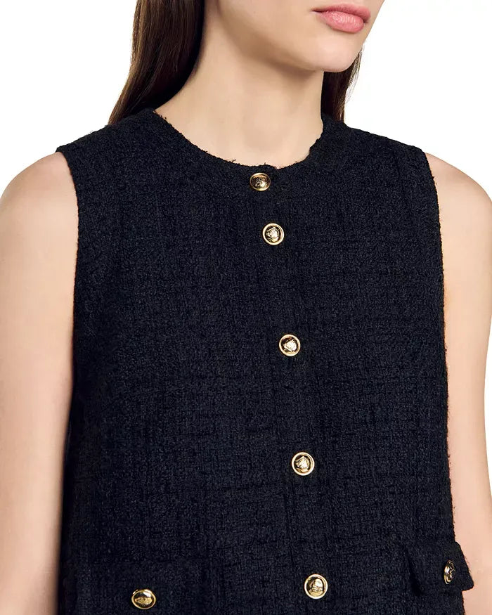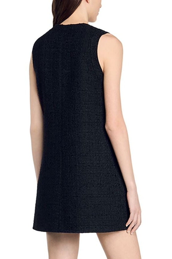The Valerie sleeveless tweed mini dress in black delivers timeless sophistication with contemporary edge. Crafted from structured tweed fabric, this piece features a refined silhouette that flatters the frame while maintaining an effortlessly chic aesthetic. The sleeveless design offers versatility—layer it with blazers for professional settings or wear solo for elevated casual occasions. Perfect for those who appreciate quality construction and understated elegance, this mini dress transitions seamlessly from day to evening wear.
