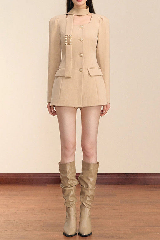 The Molly square neck mini blazer dress combines tailored sophistication with modern versatility. Featuring a structured square neckline and long sleeves, this khaki piece delivers polished elegance for both professional and casual settings. The mini length creates a contemporary silhouette, while the blazer-inspired construction ensures a refined fit. Layer it over basics for office wear or style it standalone for elevated weekend looks. A wardrobe essential that transitions seamlessly from day to evening.