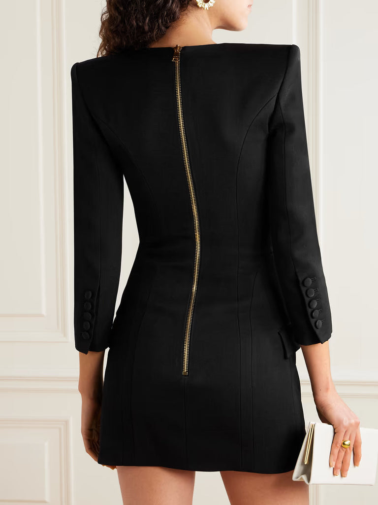Crafted from structured cotton-twill, this natividad mini dress combines timeless elegance with contemporary design. The button-embellished detailing adds visual interest and refined texture throughout, elevating the silhouette from casual to sophisticated. The classic black hue ensures versatility across seasons and occasions, while the mini length offers a modern, flattering cut. Perfect for transitioning from day to evening wear, this piece delivers both style and substance for the discerning wardrobe.