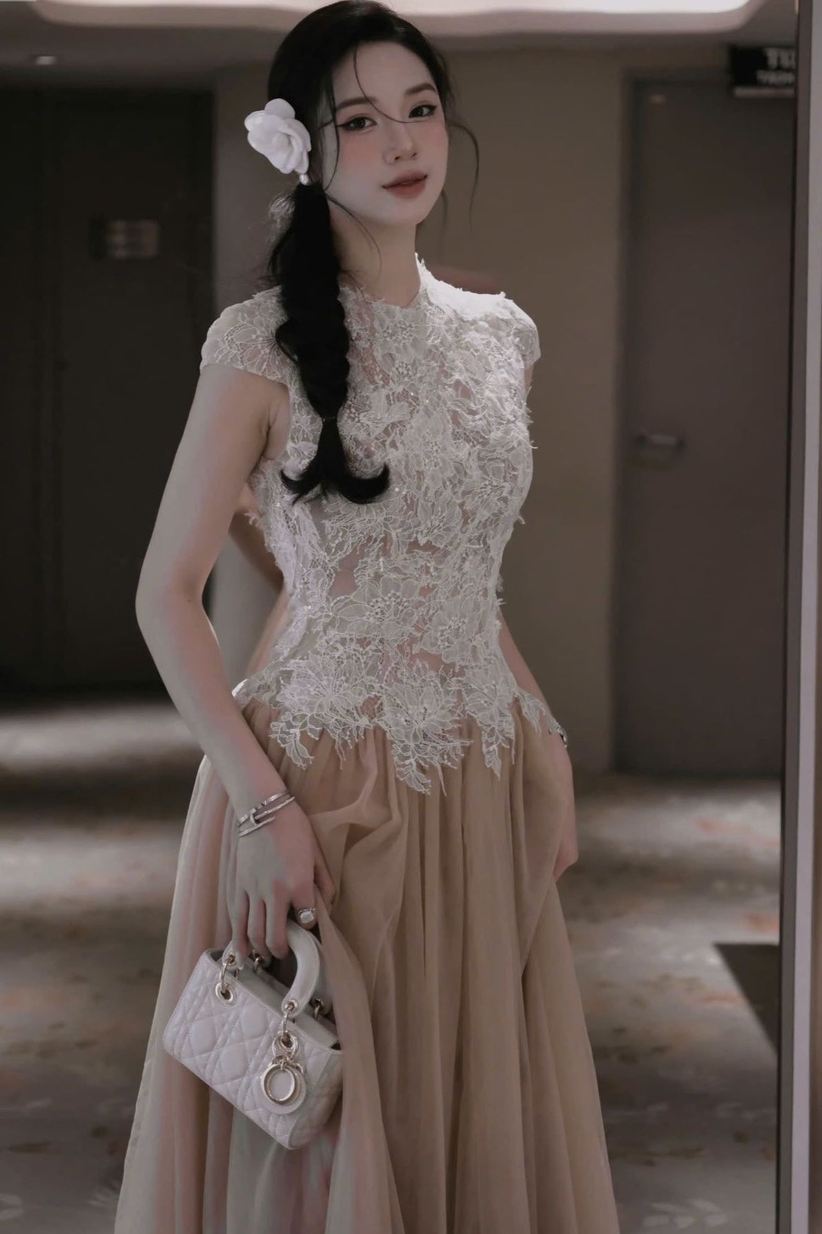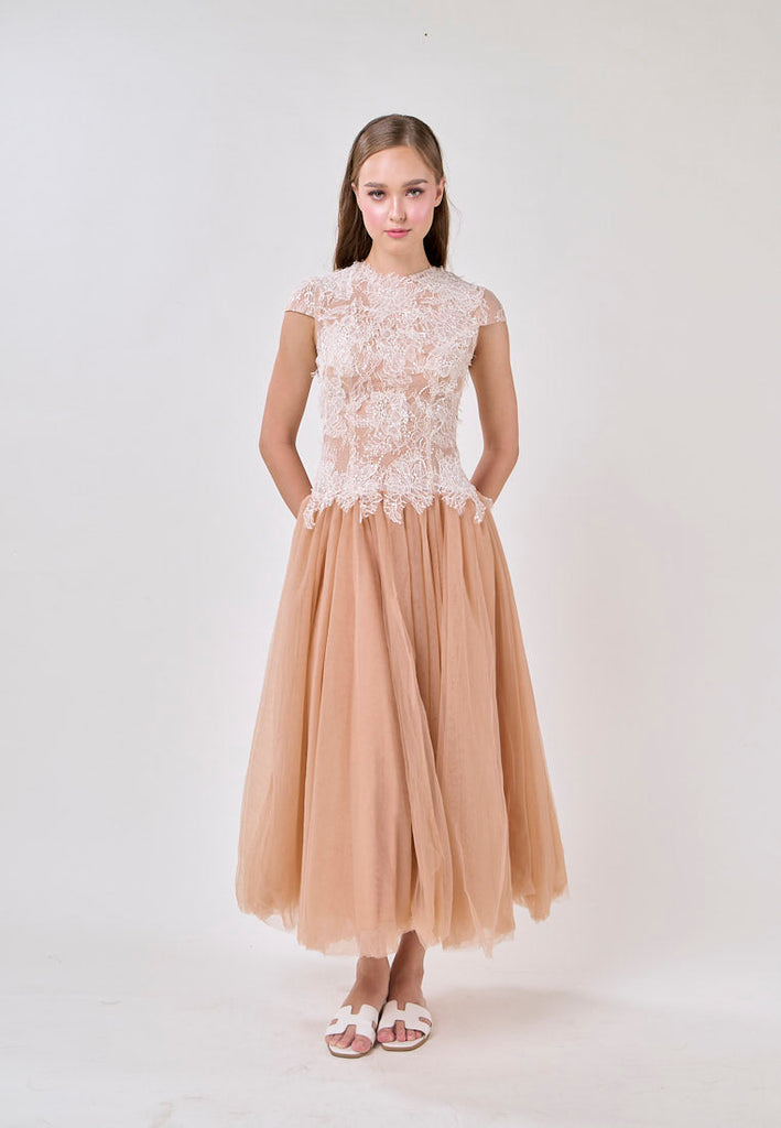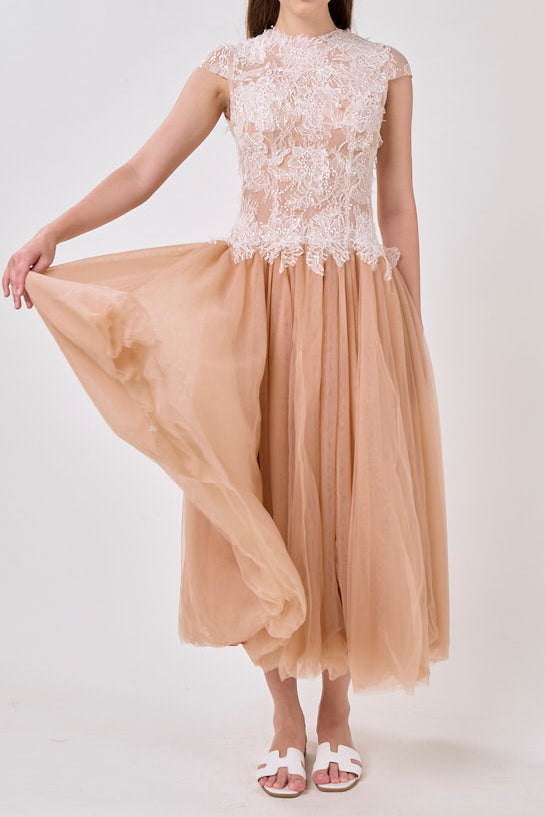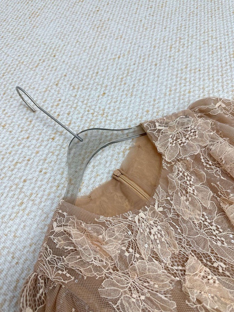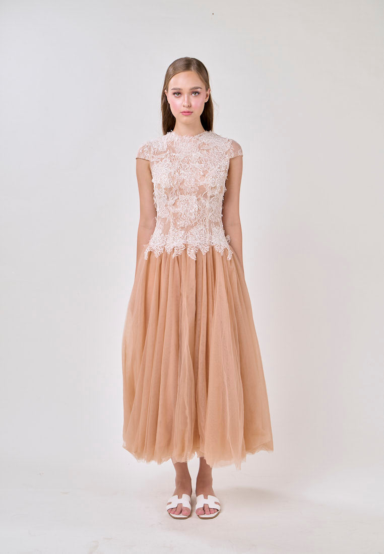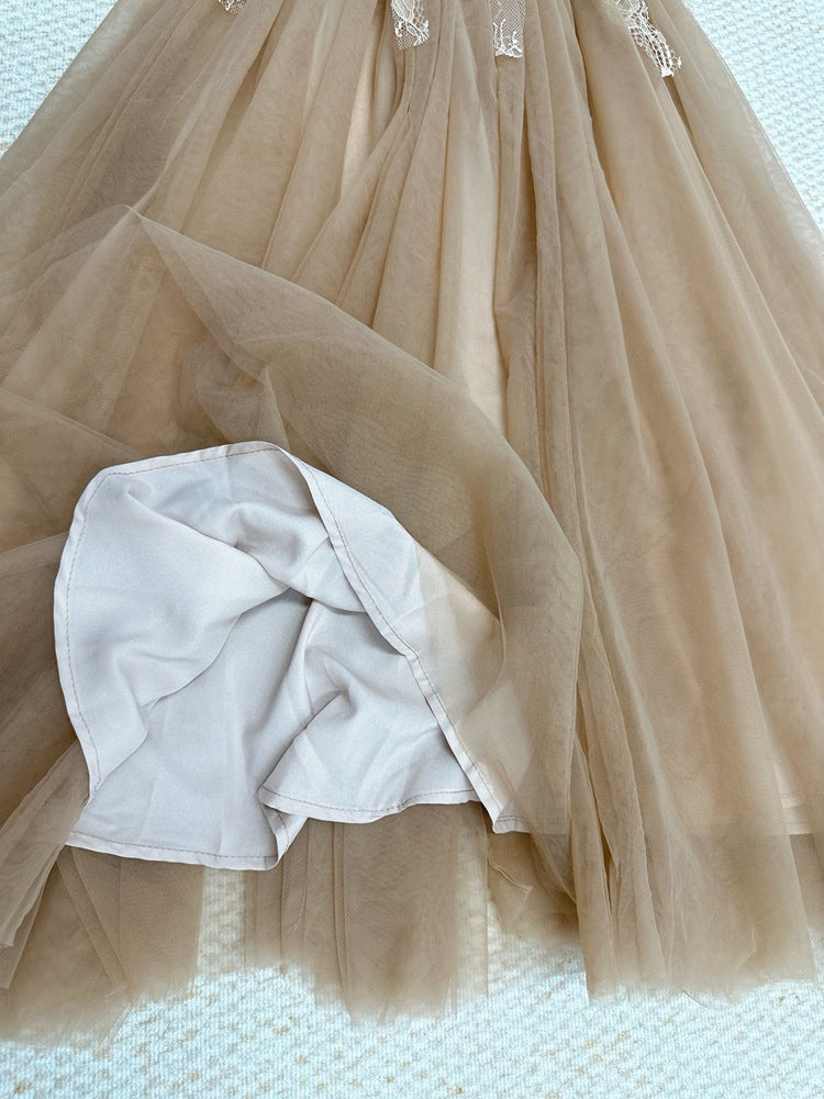 tabitha Sequin lace crochet patchwork mesh maxi dress in brown – Ellalabel.com