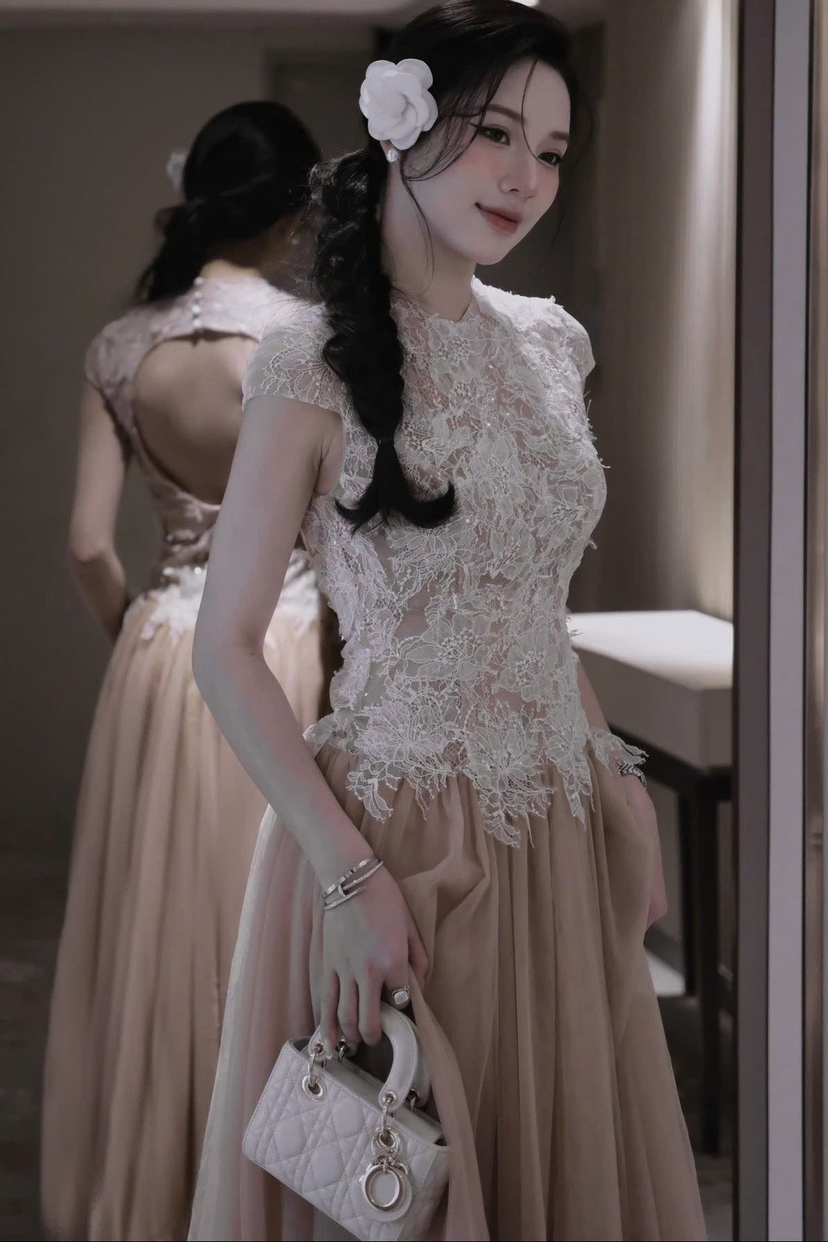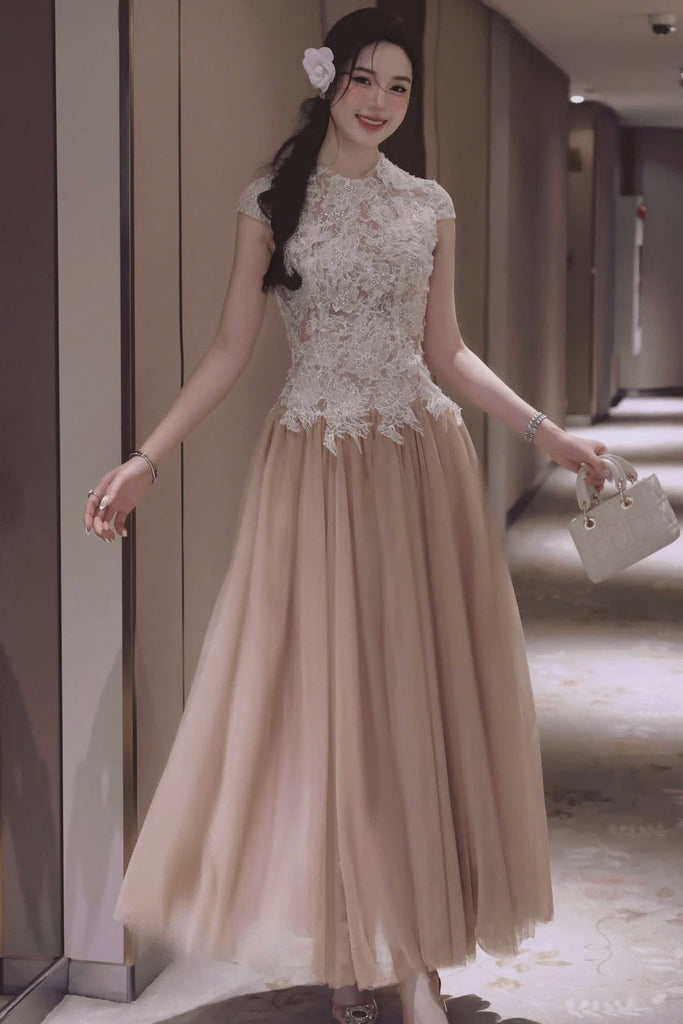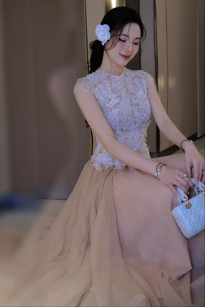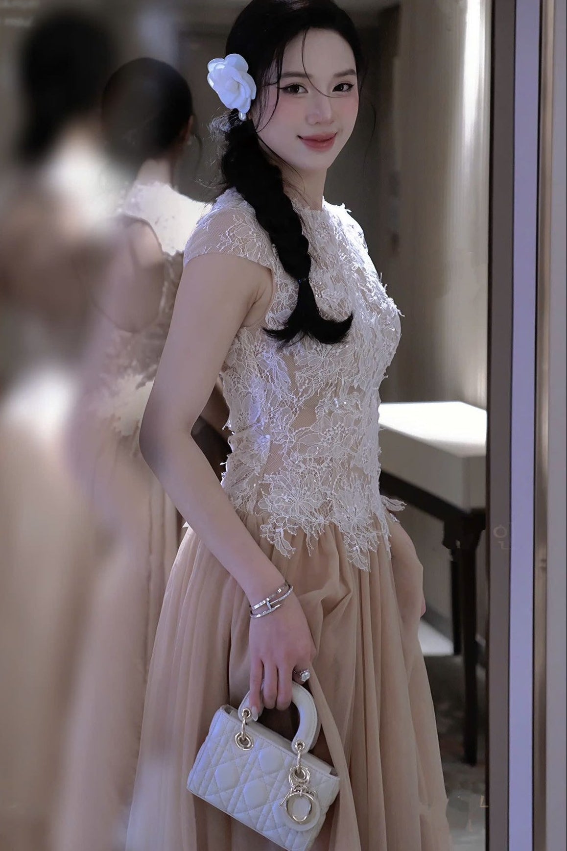 tabitha Sequin lace crochet patchwork mesh maxi dress in brown – Ellalabel.com