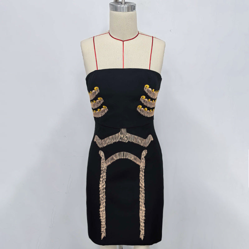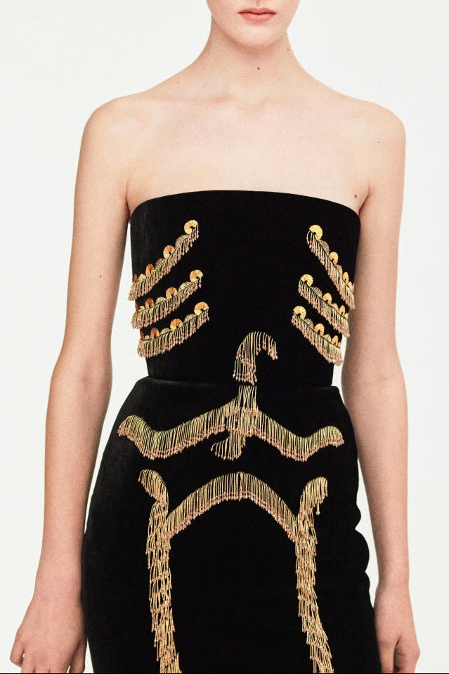 teresa Skeleton tassel embellished Bustier mini Dress in black – Ellalabel.com