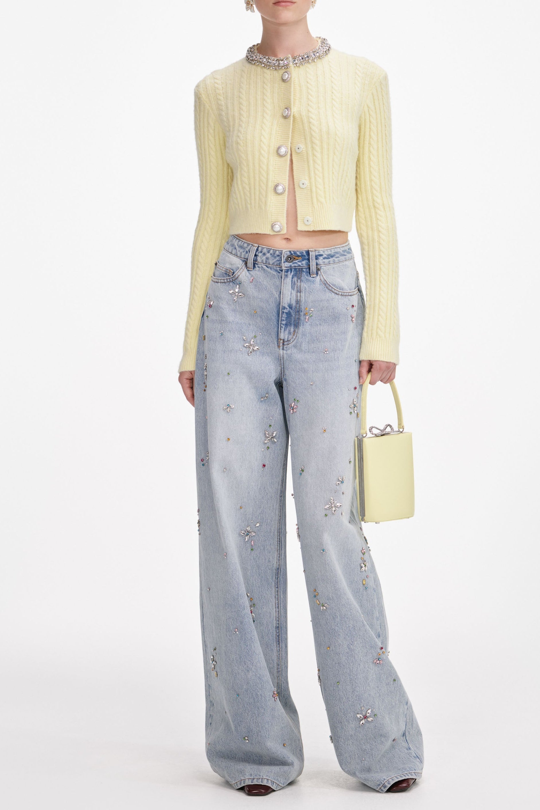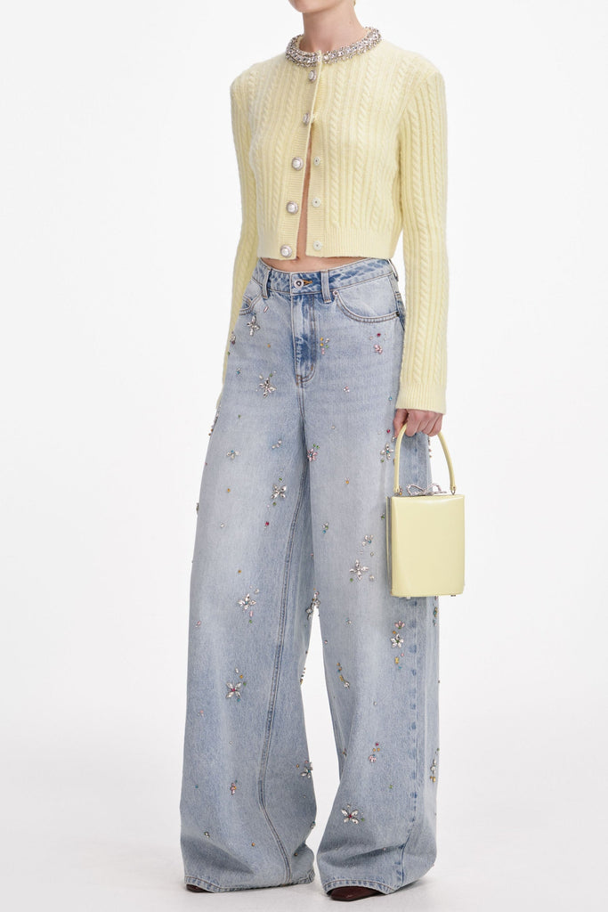 virginia Yellow rhinestones embellished Alpaca Cardigan