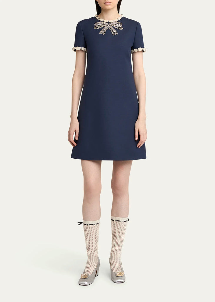 jocelyn rhinestone Embroidered Crepe mini Dress in navy blue