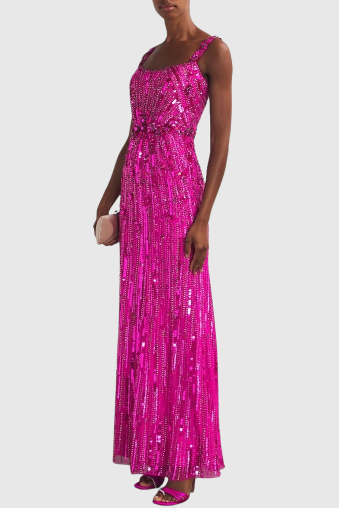 Avital Sequin Embellished Maxi Dress - Hot Pink