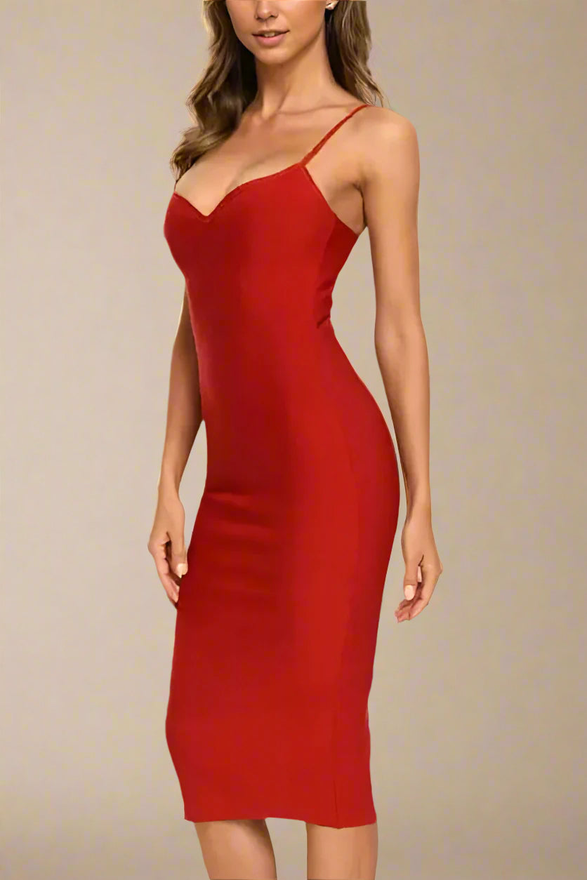 The Blanche Bandage Midi Dress in Lipstick Red is the perfect sexy red dress for any special event with thin shoulder straps, a sweetheart neckline and flattering over knee midi length finish. More on the plus size? Our bodycon dresses range in all sizes, so get that bodycon wardrobe you've always wanted, today.