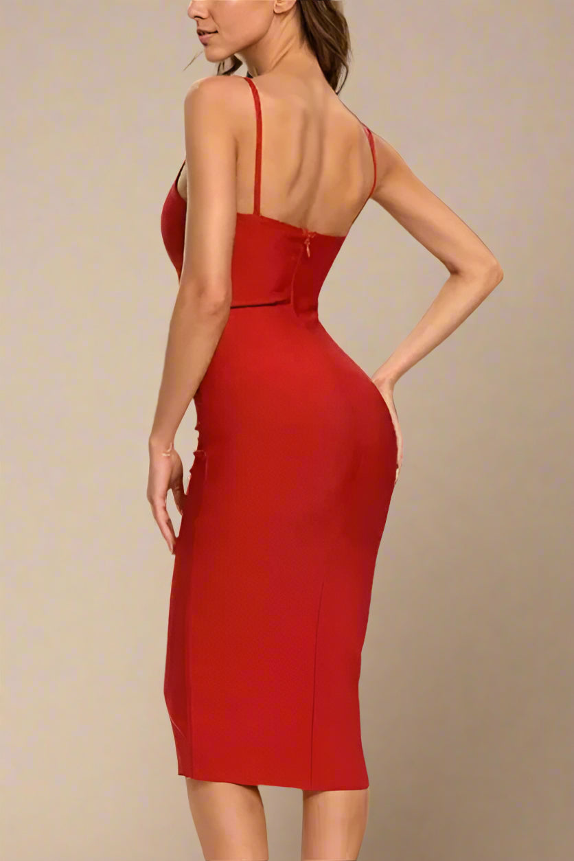 BLANCHE BANDAGE MIDI DRESS IN LIPSTICK RED