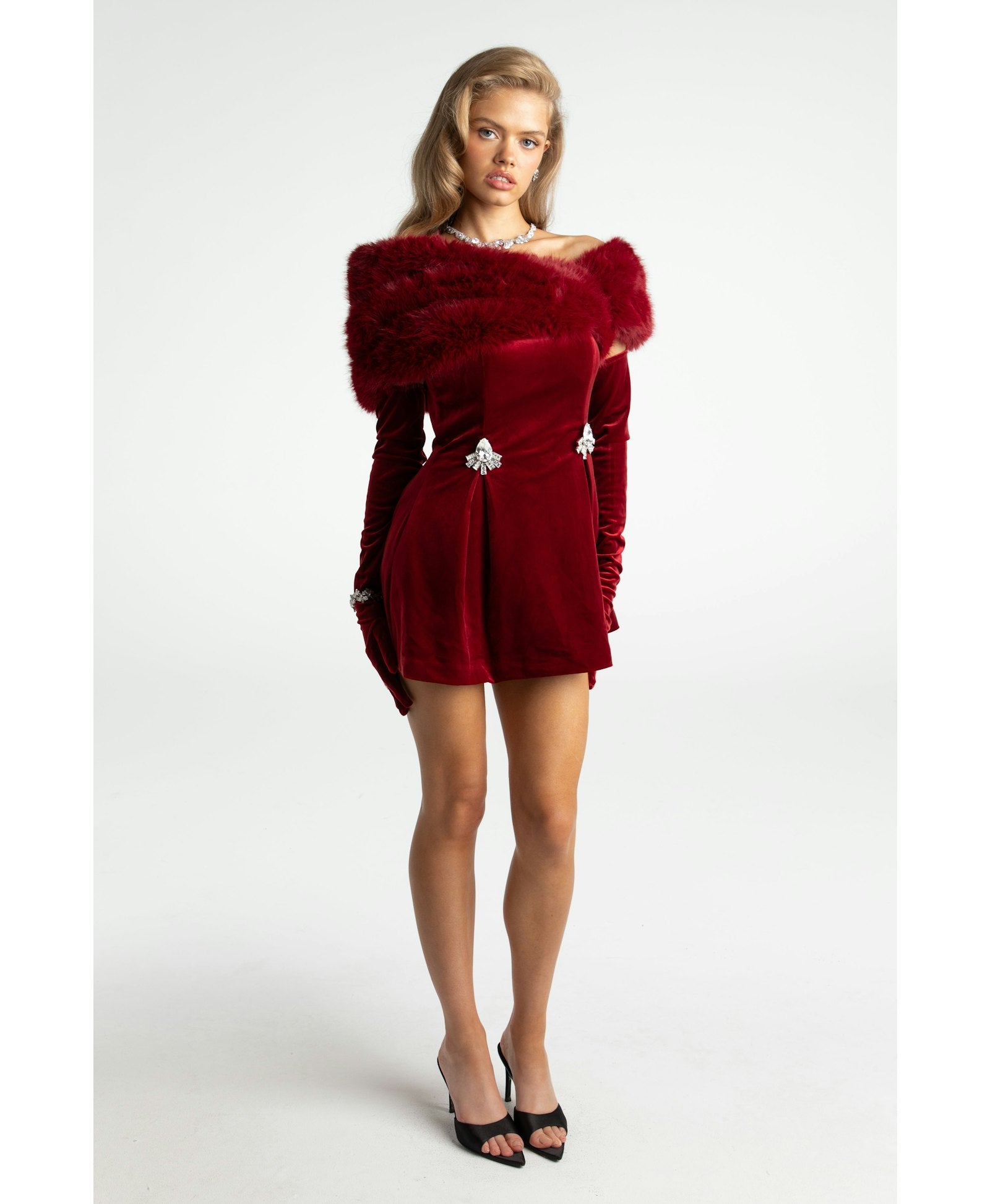 The Daphne long sleeve fur velvet mini dress in red combines luxurious textures with timeless elegance. Crafted from sumptuous velvet, this piece features plush fur accents along the sleeves for added sophistication and warmth. The mini silhouette offers a modern, flattering cut, while the rich red hue makes a bold statement. Perfect for evening events, cocktail parties, or upscale occasions, this dress transitions seamlessly from season to season. The long sleeves provide coverage and refinement, making it versatile enough for layered styling. An investment piece that delivers both comfort and undeniable style.