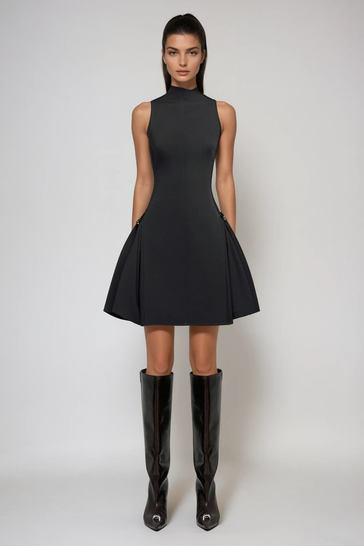 The Cabdullaahi Sleeveless Mini Dress in Black offers a sleek, modern silhouette perfect for versatile styling. Crafted to highlight the shoulders and elongate the legs, this dress combines minimalist design with a flattering fit. Ideal for both day and evening wear, its timeless black hue ensures effortless pairing with a variety of accessories and footwear.