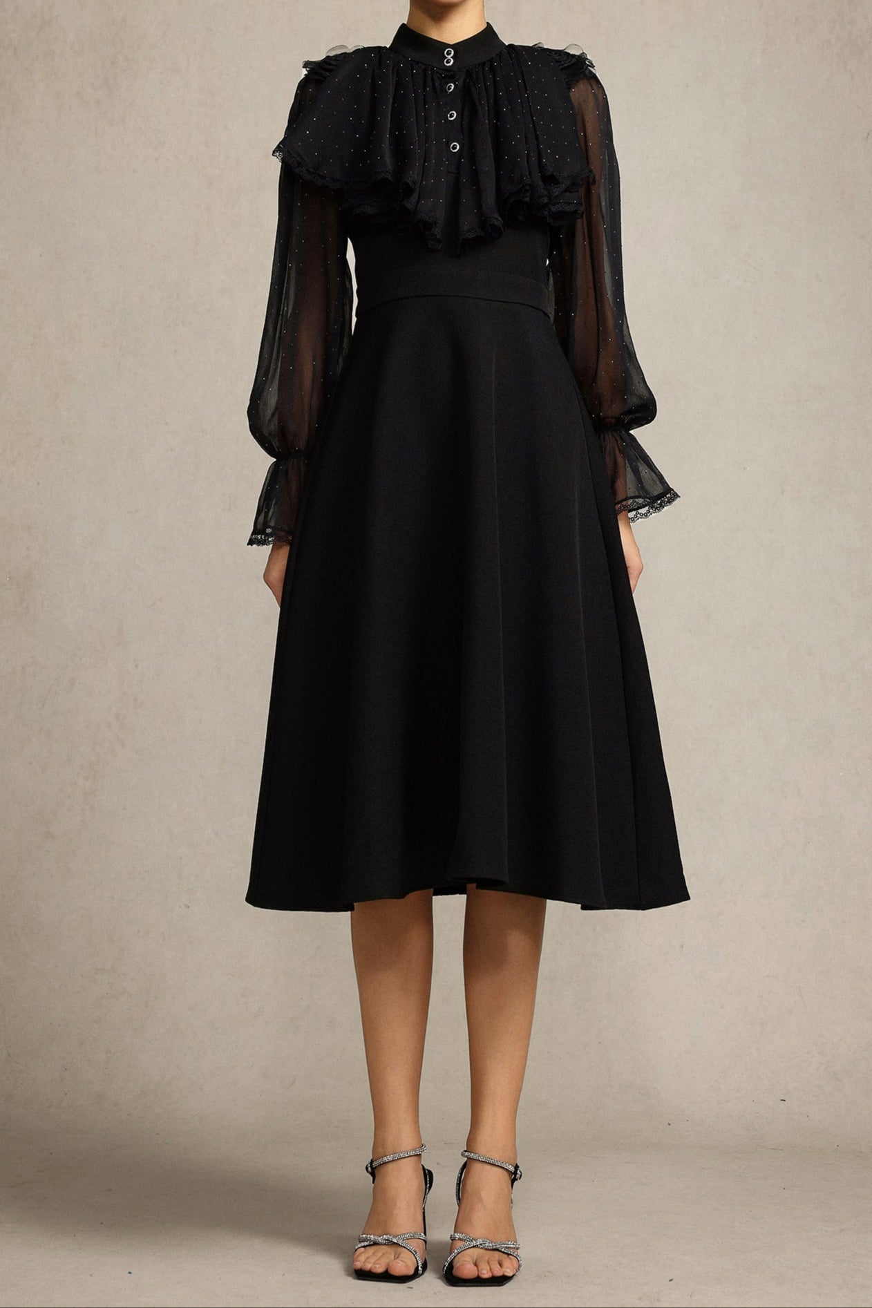 hannah Long Sleeves False Two-Piece Flowers Midi Dress - S is backordered and will ship as soon as it is back in stock.
