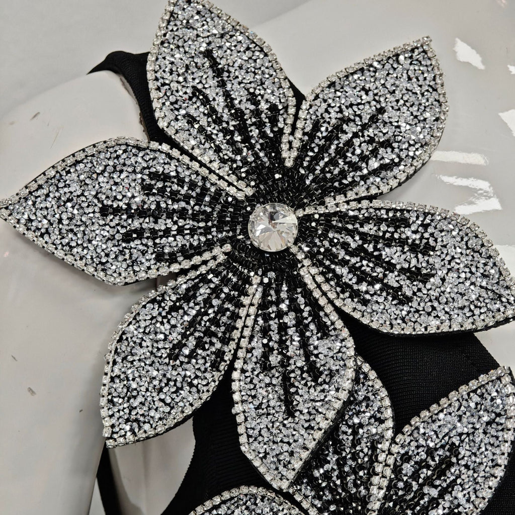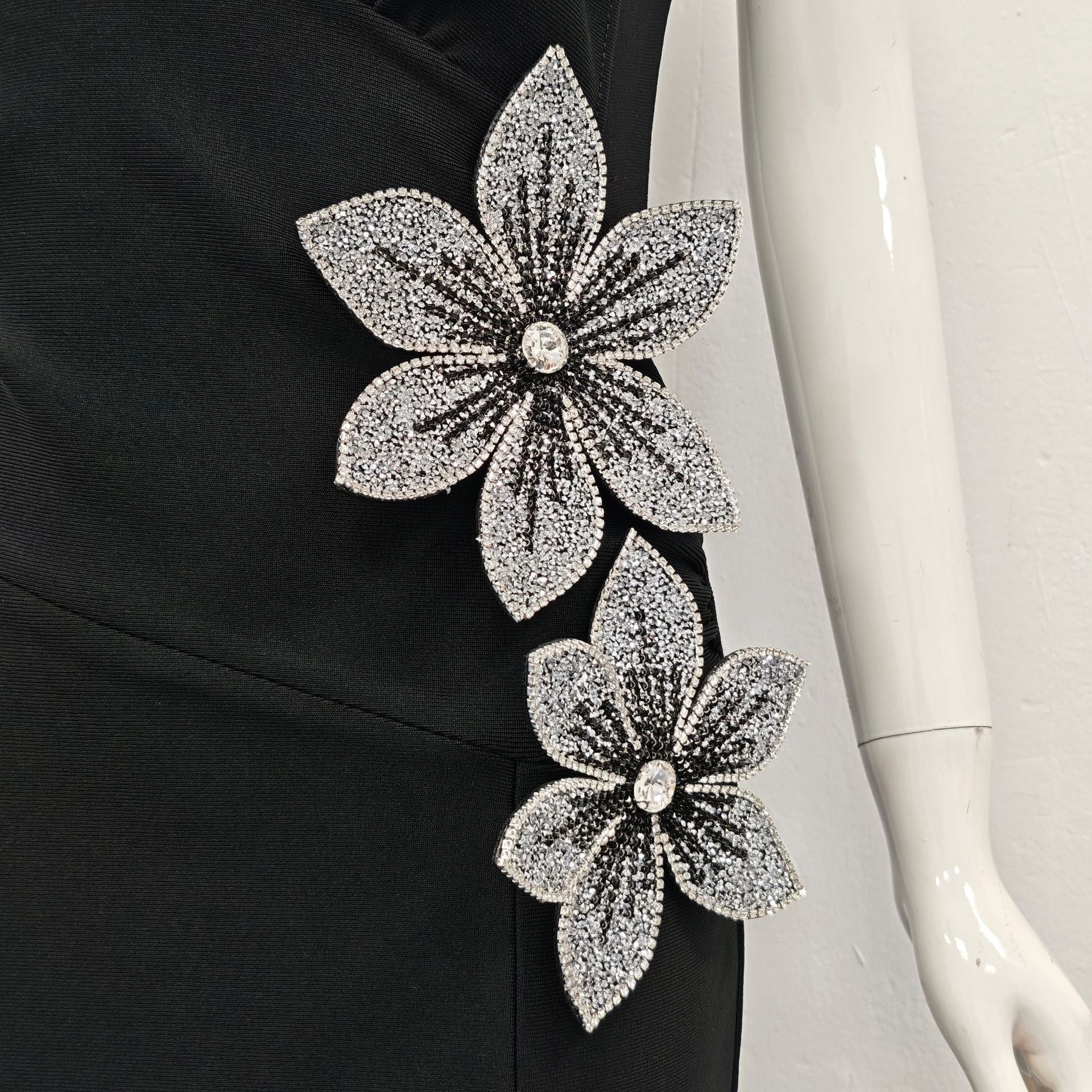 Erlinda black 3D Floral Rhinestone Bodycon Slit Maxi Bandage Dress – Ellalabel.com