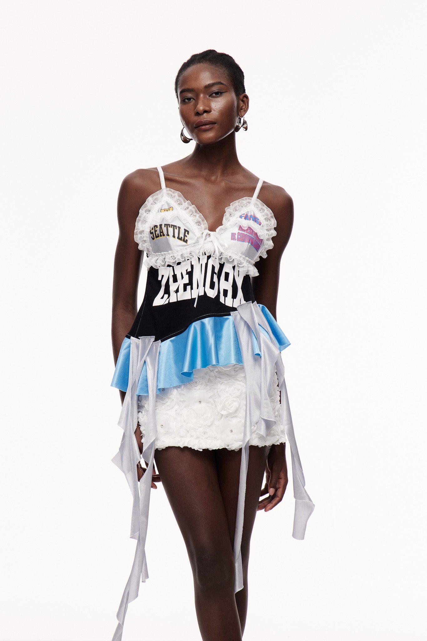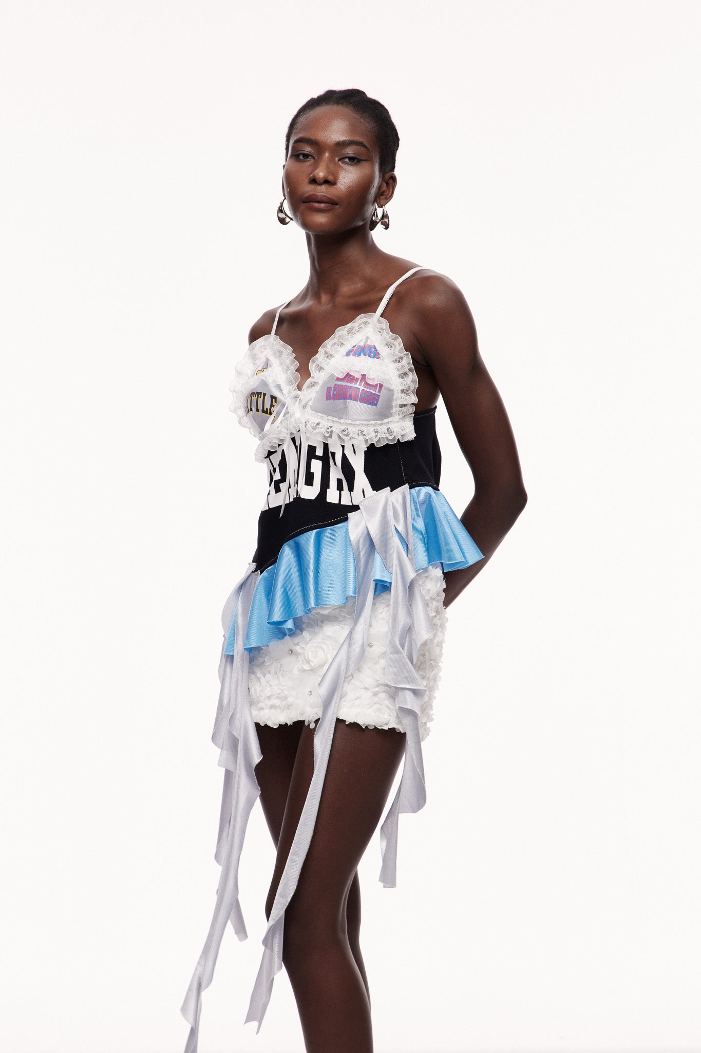 The Ceallagh Lace Fringe Top in Blue combines delicate lace craftsmanship with playful fringe detailing, offering a refined yet dynamic silhouette. Its intricate lace fabric ensures breathability and elegance, while the fringe adds movement and texture, perfect for elevating both casual and formal ensembles with a sophisticated edge.