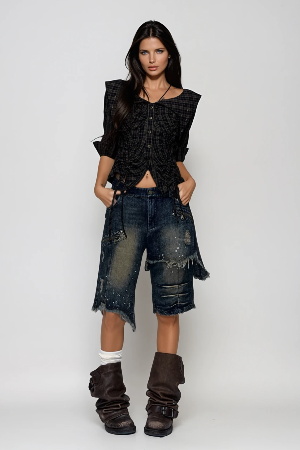 The Chidiegwu Asymmetric Fringe Midi Jeans combine contemporary design with expert craftsmanship. Featuring an asymmetric cut and distinctive fringe detailing, these midi-length jeans offer a unique silhouette that elevates casual wear. Crafted for both style and comfort, they provide a modern edge while maintaining versatile wearability for various occasions.