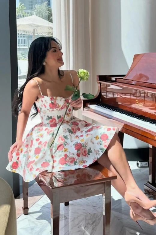 "It’s so beautiful 😍 I went with the smallest size, XS and my measurements are Bust: 33 inch, Waist: 25 inch, Hip: 36 inch and I am 5’1"
