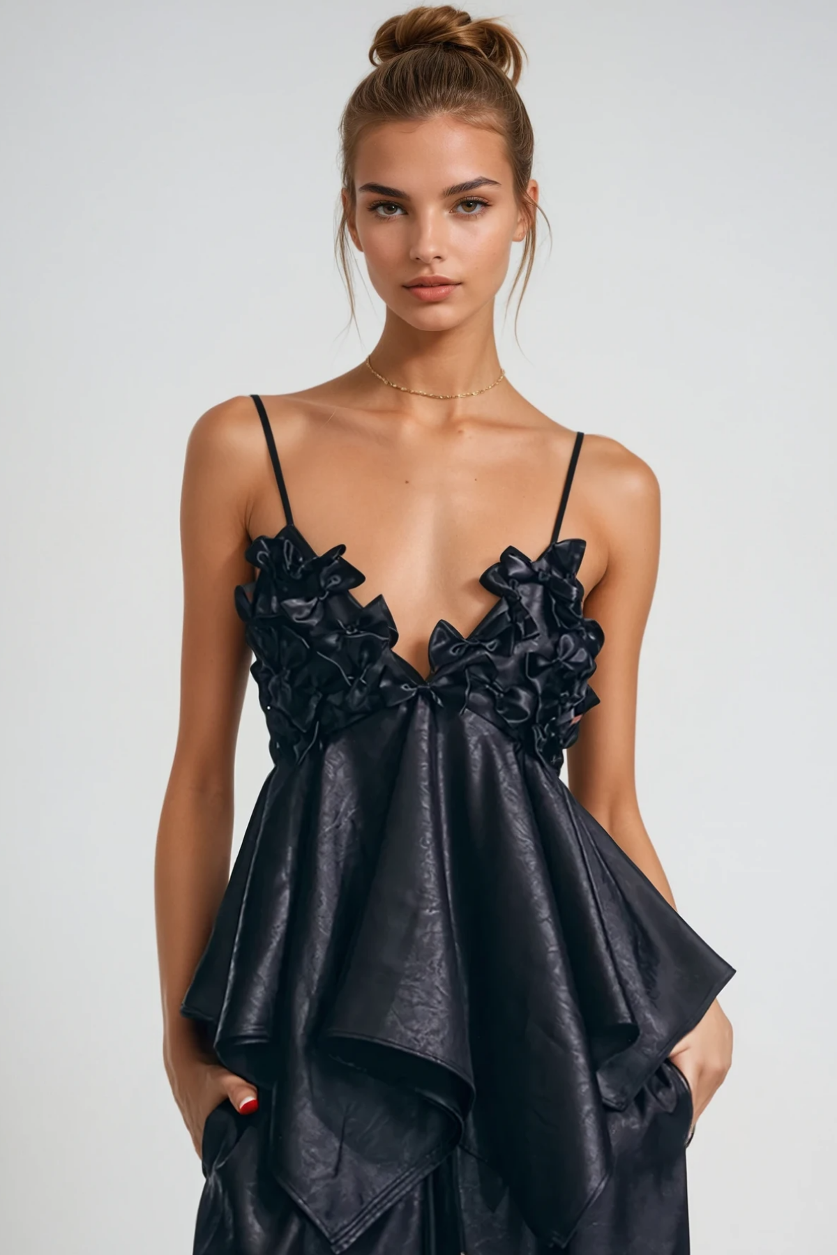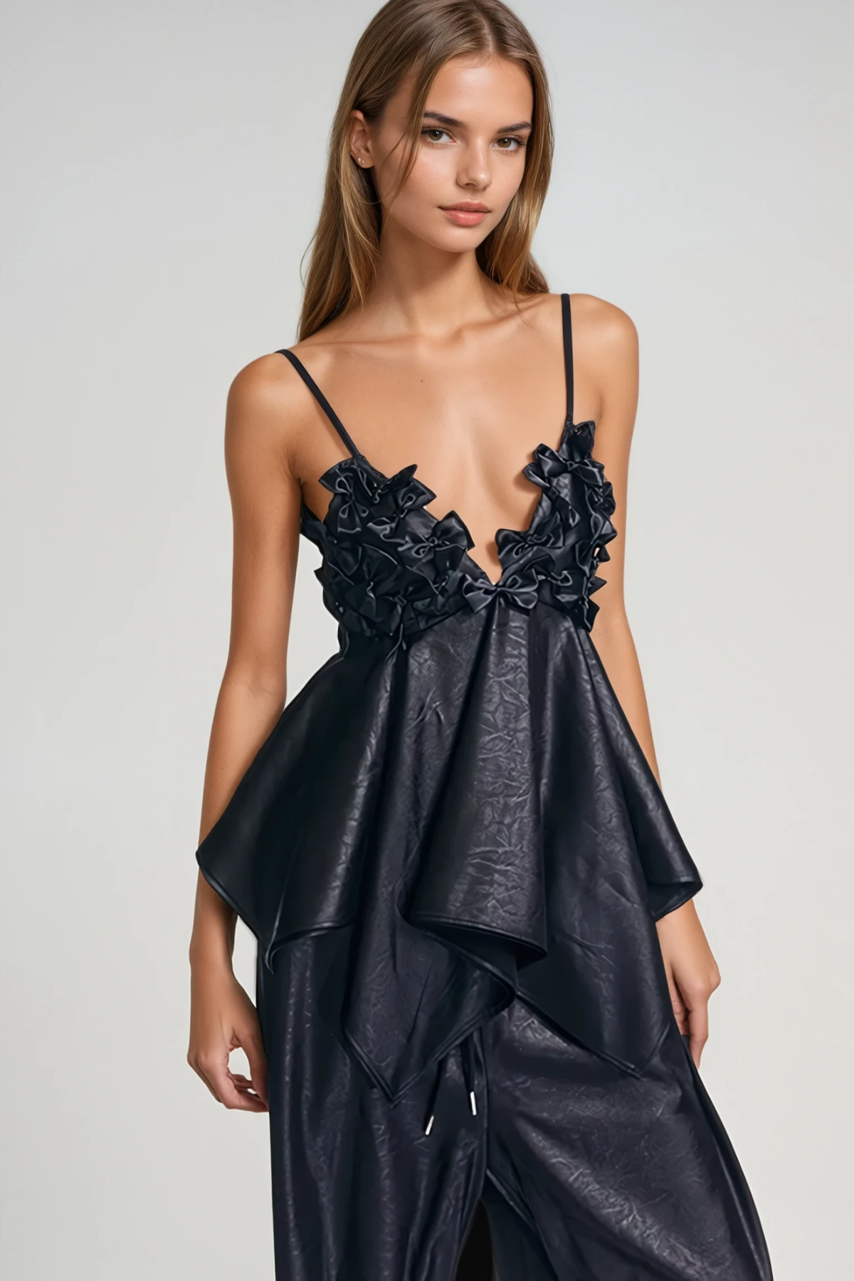 Crafted with premium leather, the Bitrus Bow Leather Spaghetti Top combines sophisticated design with contemporary style. The distinctive bow detail adds elegant flair while the spaghetti straps provide versatile wearability. This expertly constructed piece transitions seamlessly from day to evening, offering both durability and timeless appeal for the discerning fashion enthusiast.