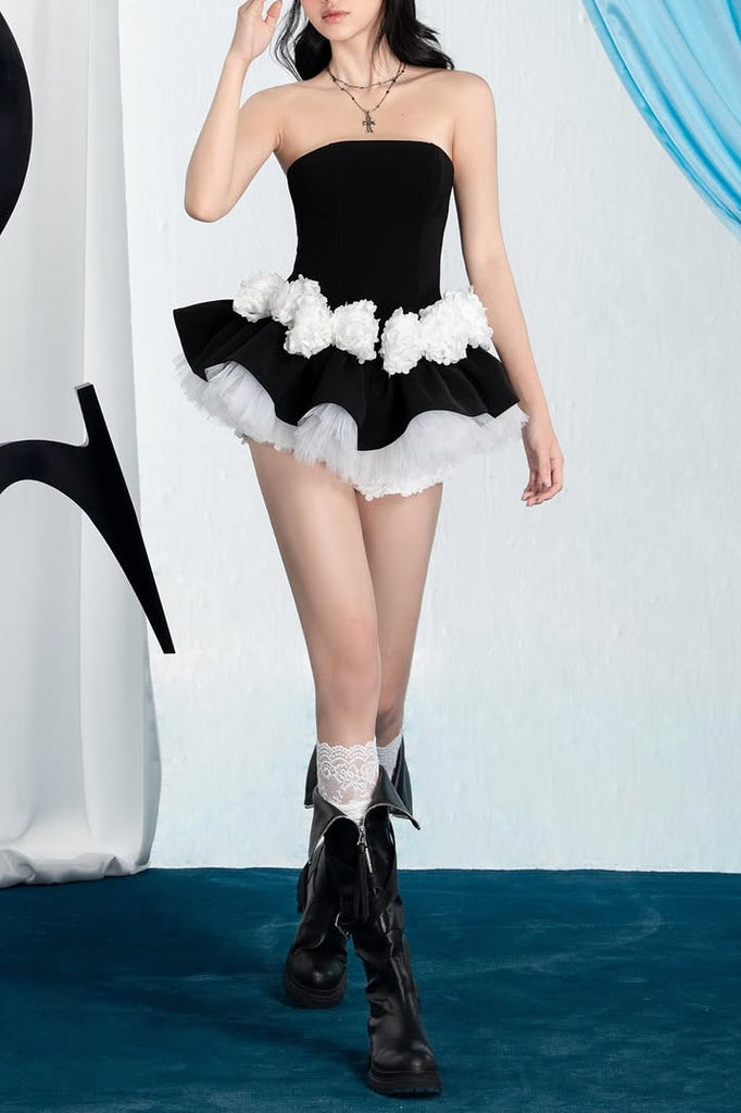 cornelia Plush Cut Strapless mini Dress in black - mink