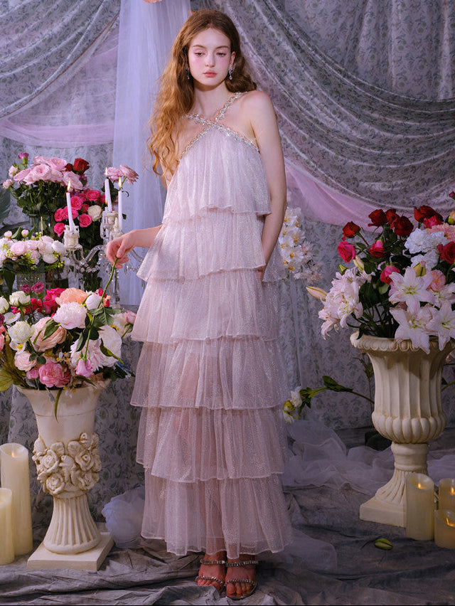Mera Sleeveless Diamond Chain Cake evening Dress