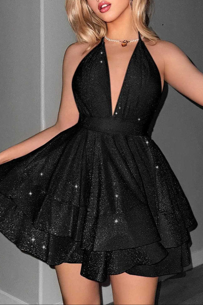 Jeannie Pink Sleeveless Sequin layer ruffle short Dinner Dress