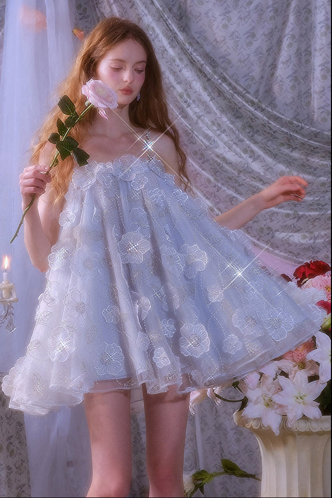 Christian Tutu Light Blue Sleeveless Flower Diamond Short Doll Dress