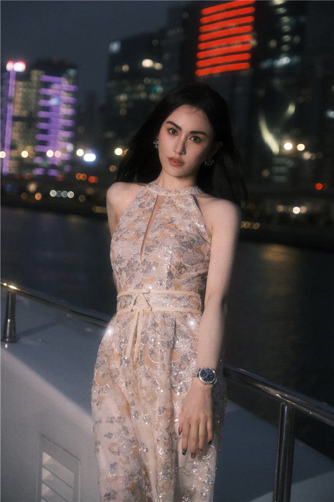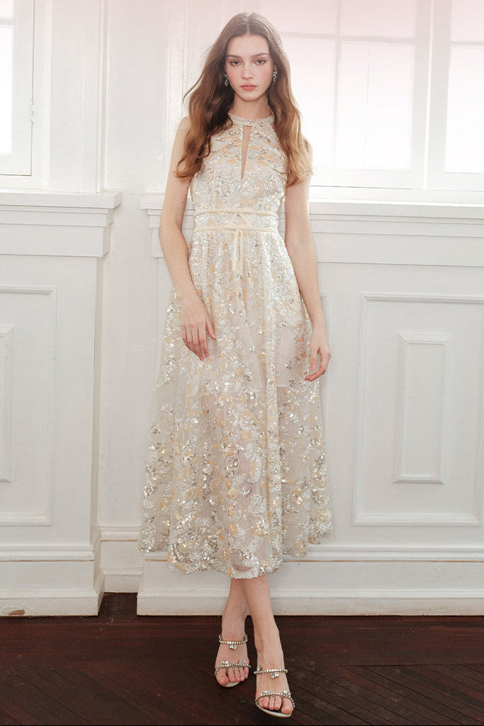 Gabriella Gold Couture with Floral Embroidery Sequin Banquet Dress