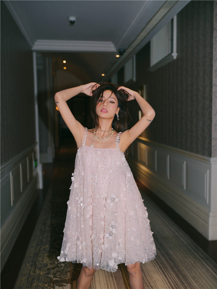 Rachel Pink Flower Embroidered Loose doll Party Dress