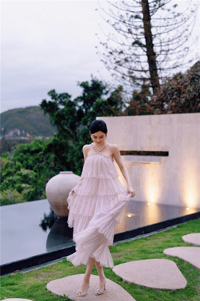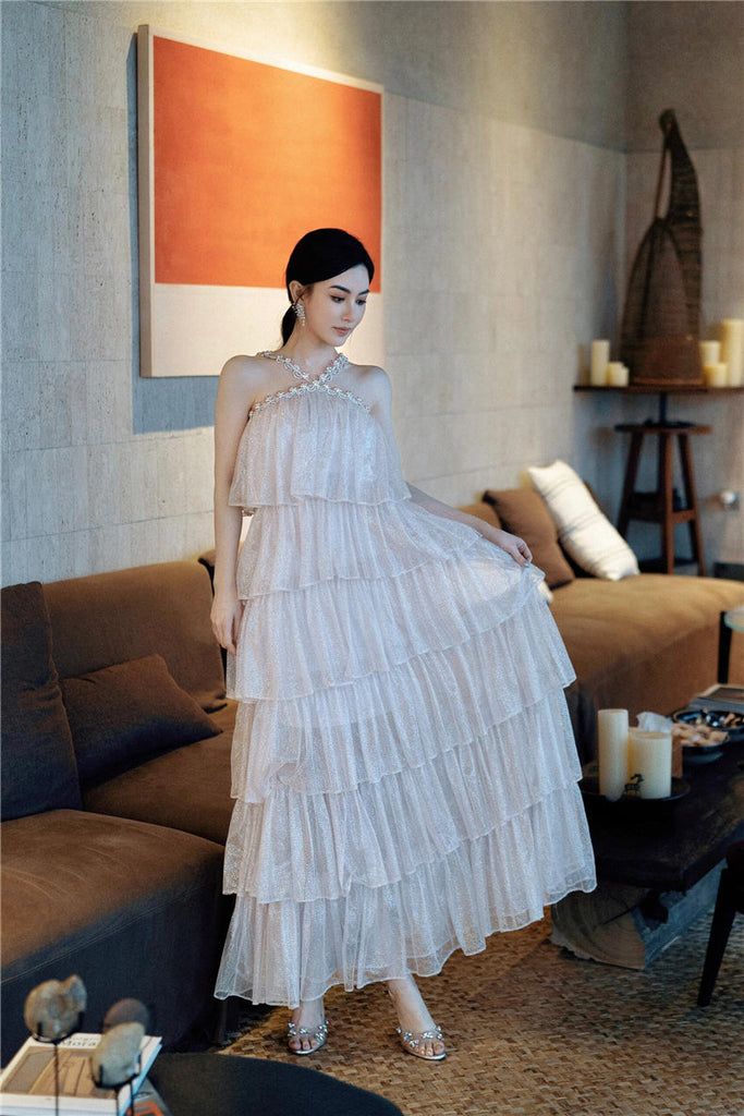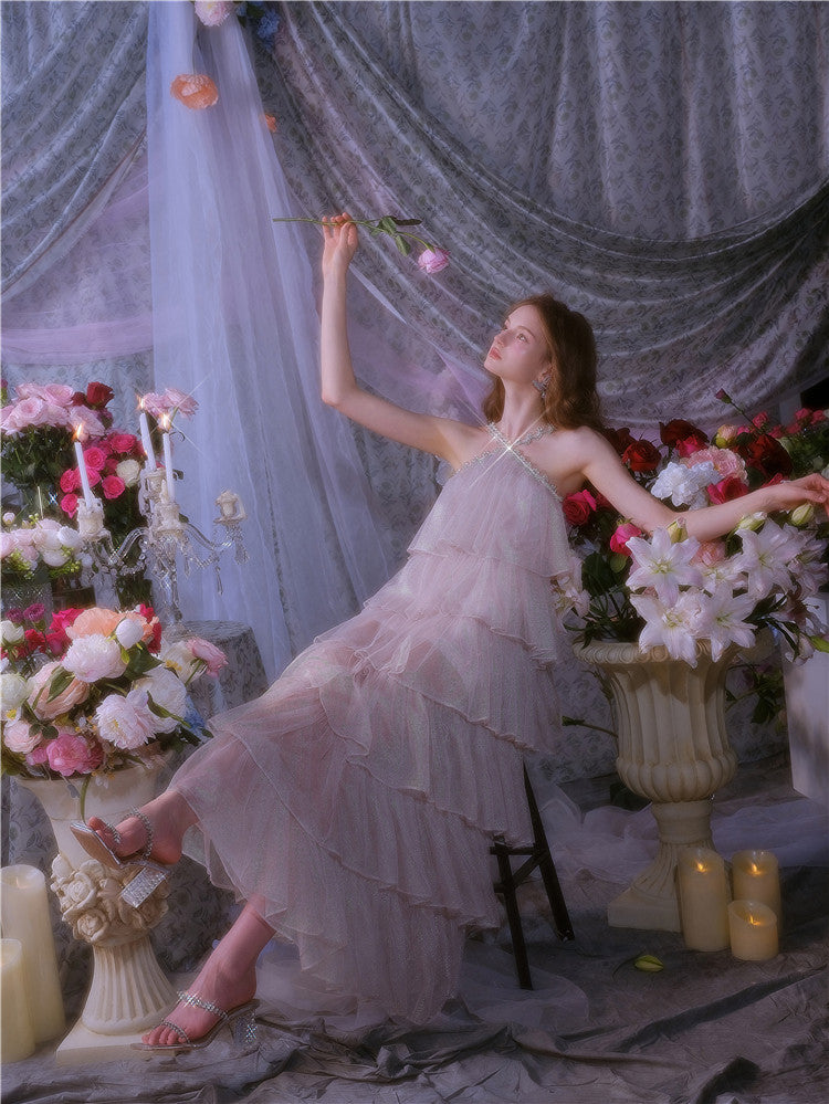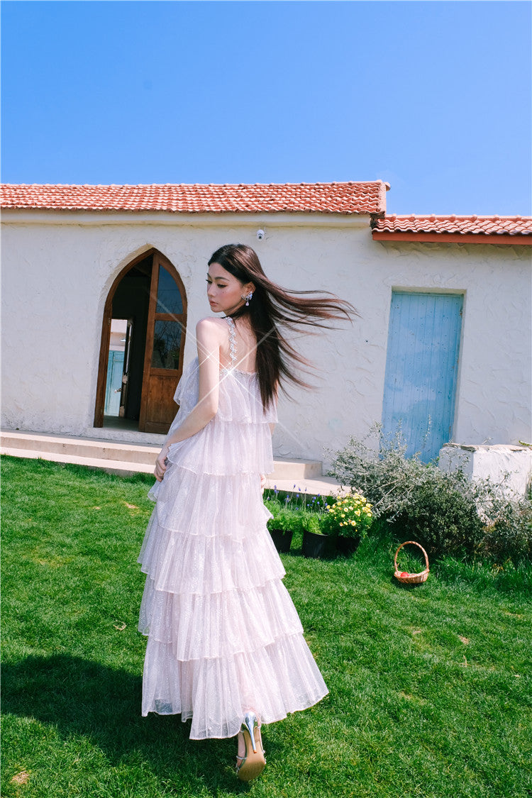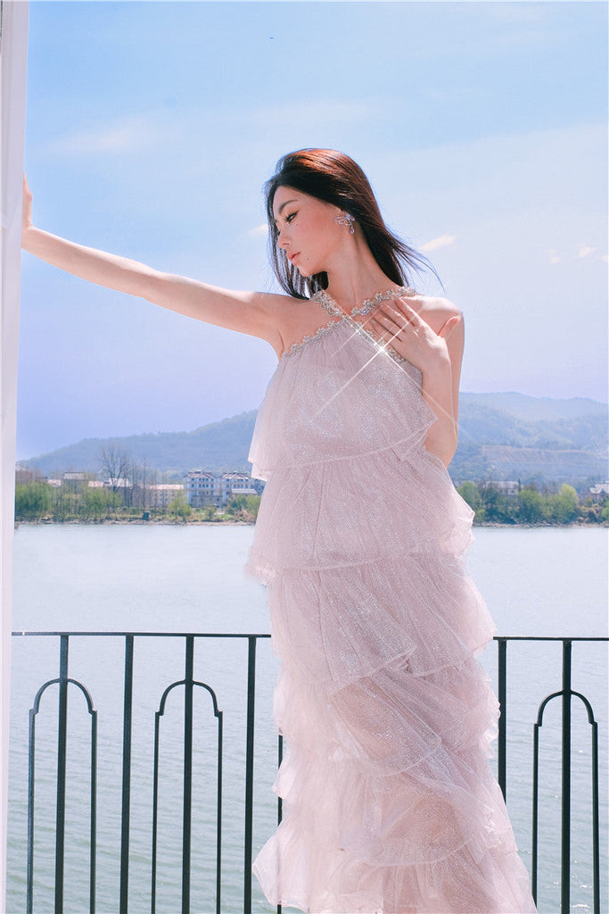 Mera Sleeveless Diamond Chain Cake evening Dress