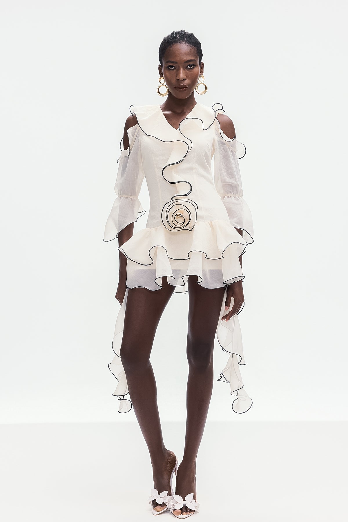 Ellalabel Boel Ruffle Flower Fringe Mini Dress – Ellalabel.com