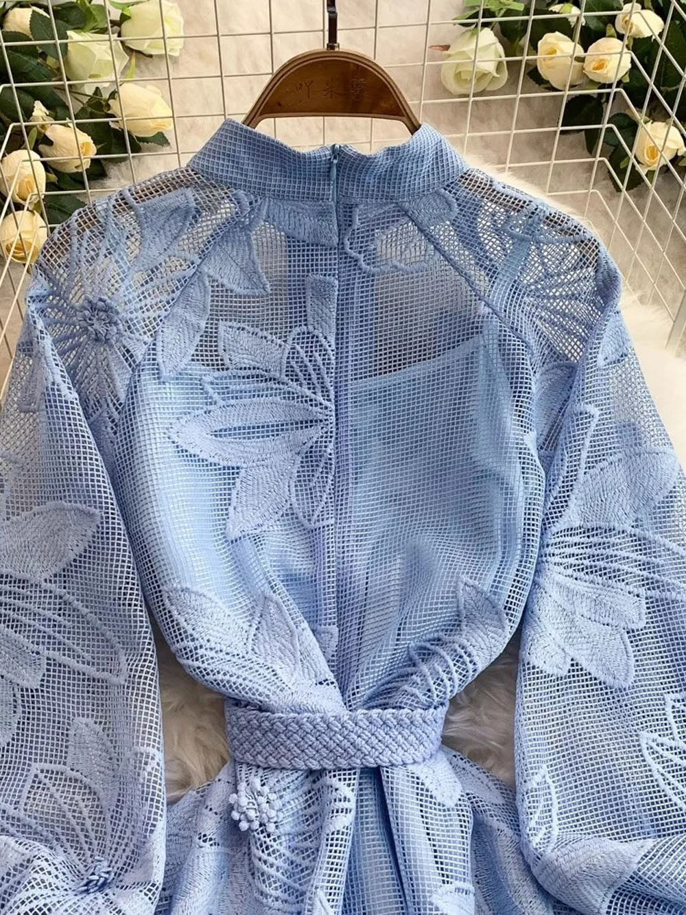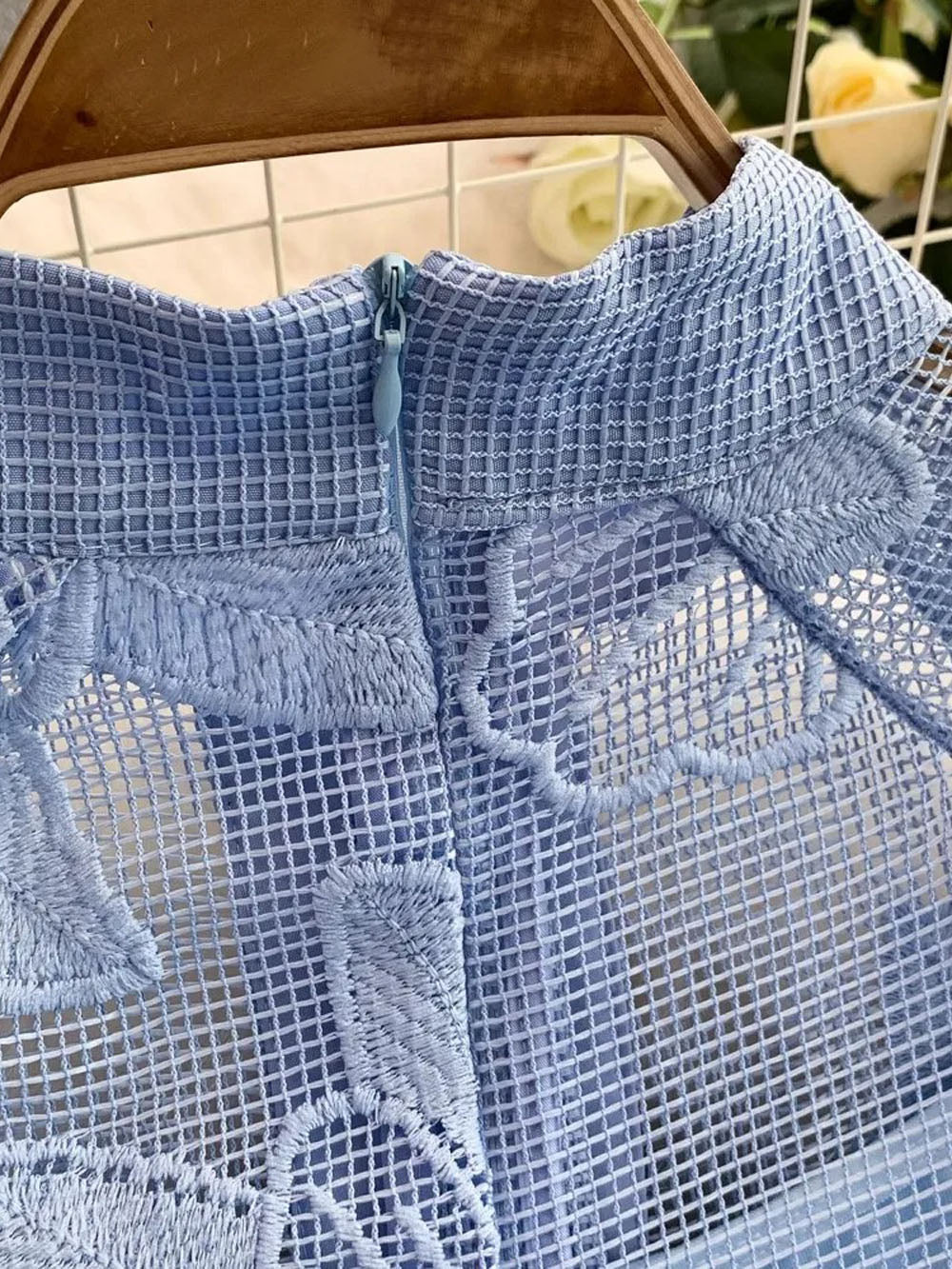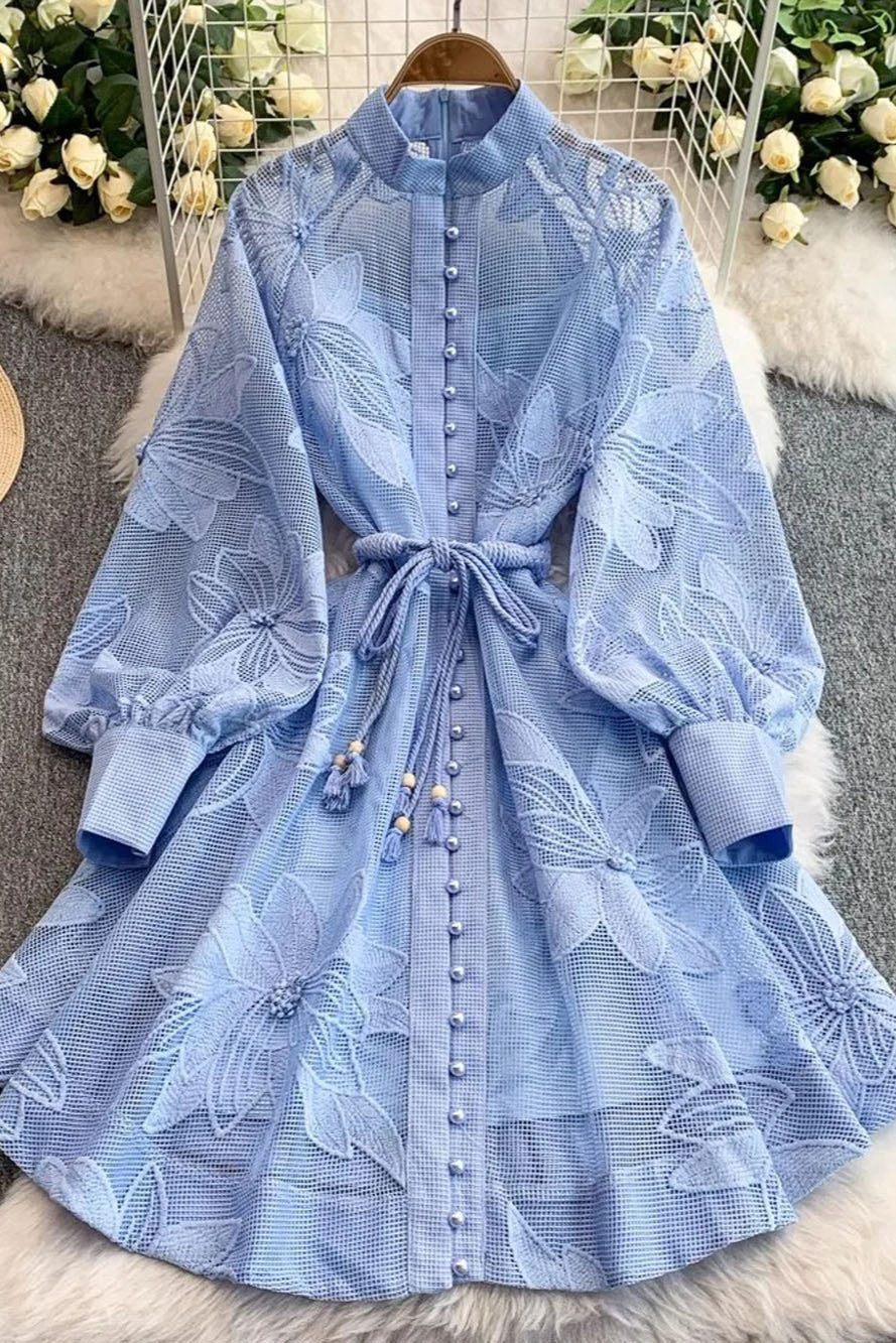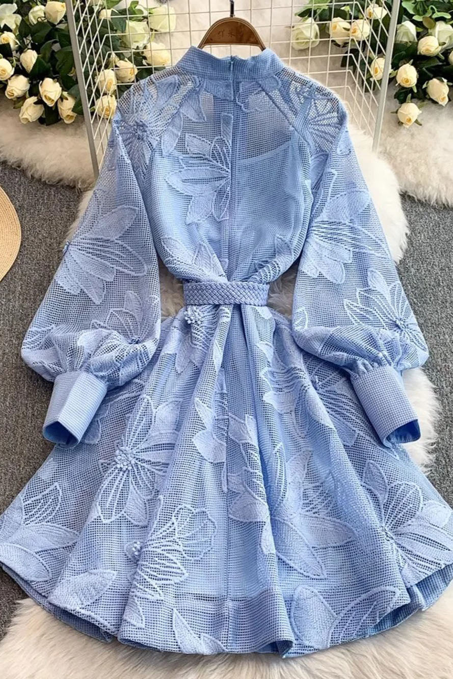 Caroline Floral Mesh Mini Dress - Blue / XS is backordered and will ship as soon as it is back in stock.