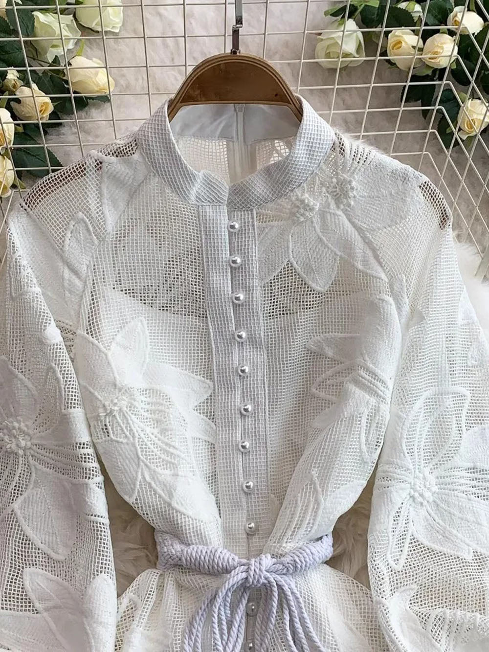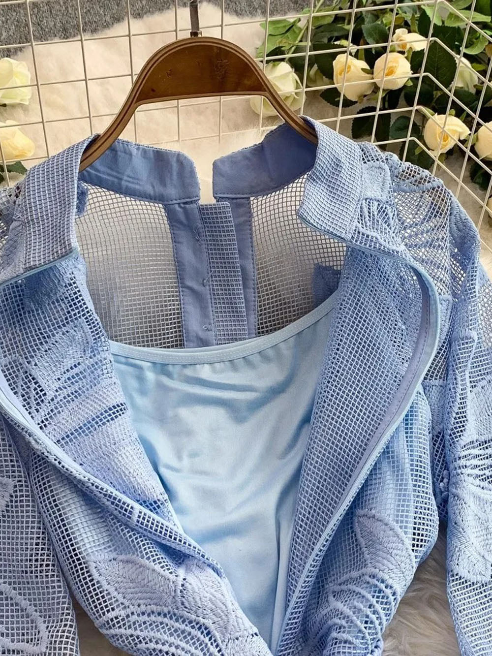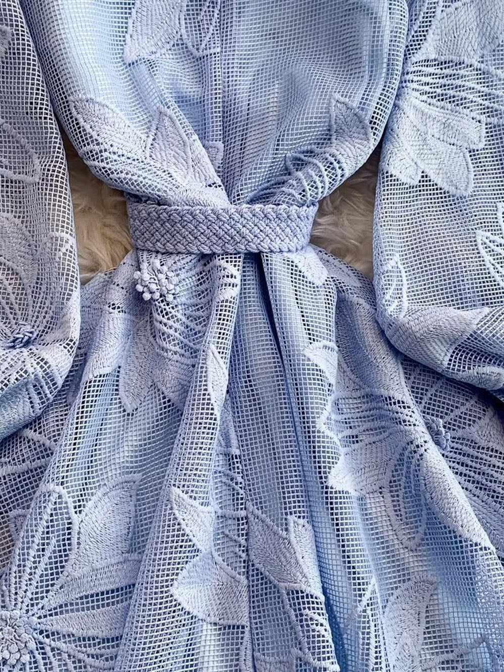 Caroline Floral Mesh Mini Dress - Blue / XS is backordered and will ship as soon as it is back in stock.