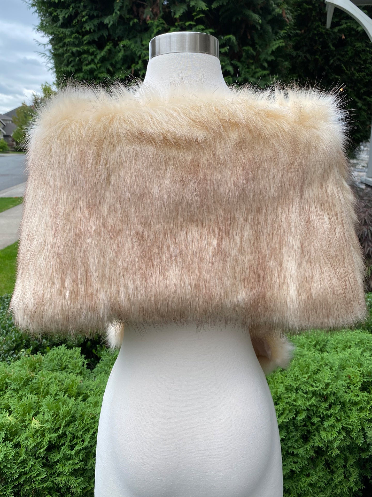 Beautiful Champagne color faux fur wrap made of luxurious and soft faux fur in Champagne color with darker tips. It is the high imitation of the real fox fur. Fully lined with fleece lining. It's perfect for wedding or other special occasions. Please note the tail is not included in this listing.