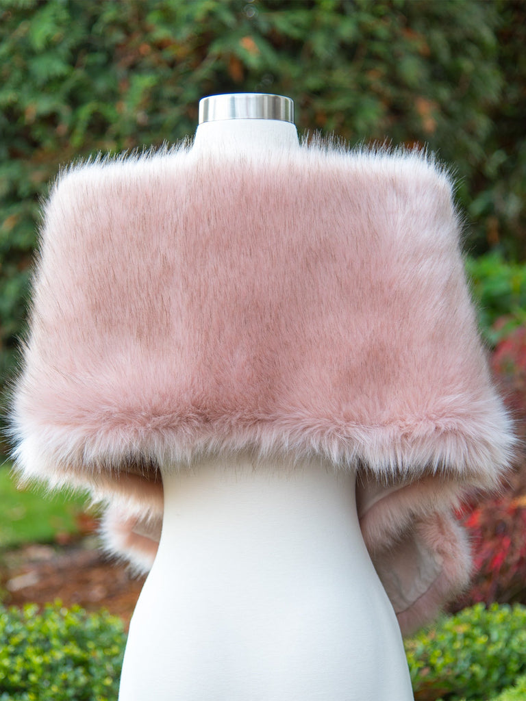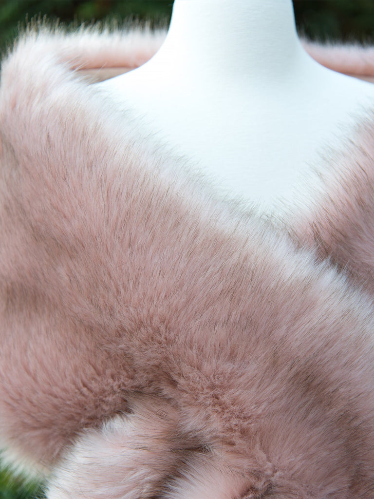 Beautiful dusty rose color faux fur wrap made of luxurious and soft faux fur. It is the high imitation of the real fox fur. Fully lined with soft and warm fleece lining. It's perfect for wedding or other special occasions.