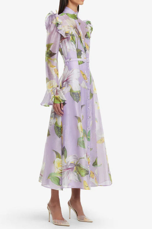 caitlin Lily Blossom Print Lilac Butterfly Sleeve Midi Dress – Ellalabel.com