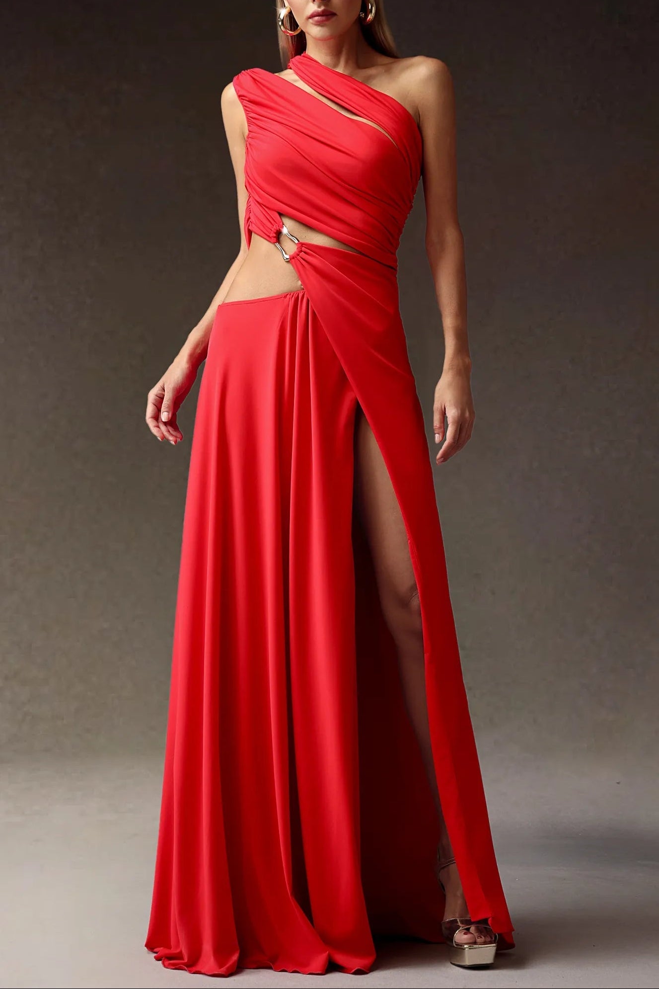 Make a striking statement with the Atalanta High Slit Hollowed-out Maxi Dress in red. Crafted for confident elegance, this dress features a daring high slit and delicate hollowed-out detailing that together create a sophisticated yet bold silhouette. The flowing maxi length enhances movement, perfect for formal occasions or evening events where a refined yet captivating look is essential. Designed with attention to fit and fabric, this dress balances allure and sophistication effortlessly.
