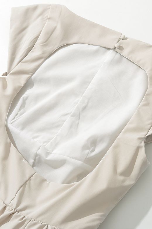 STELLA CAPPED SLEEVES BODYCON MIDI DRESS IN BEIGE CREAM
