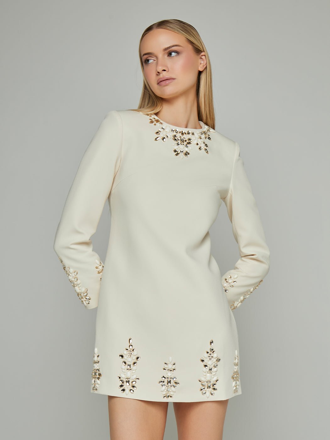 Angelique Beaded Straight Mini Dress - Apricot / XS is backordered and will ship as soon as it is back in stock.