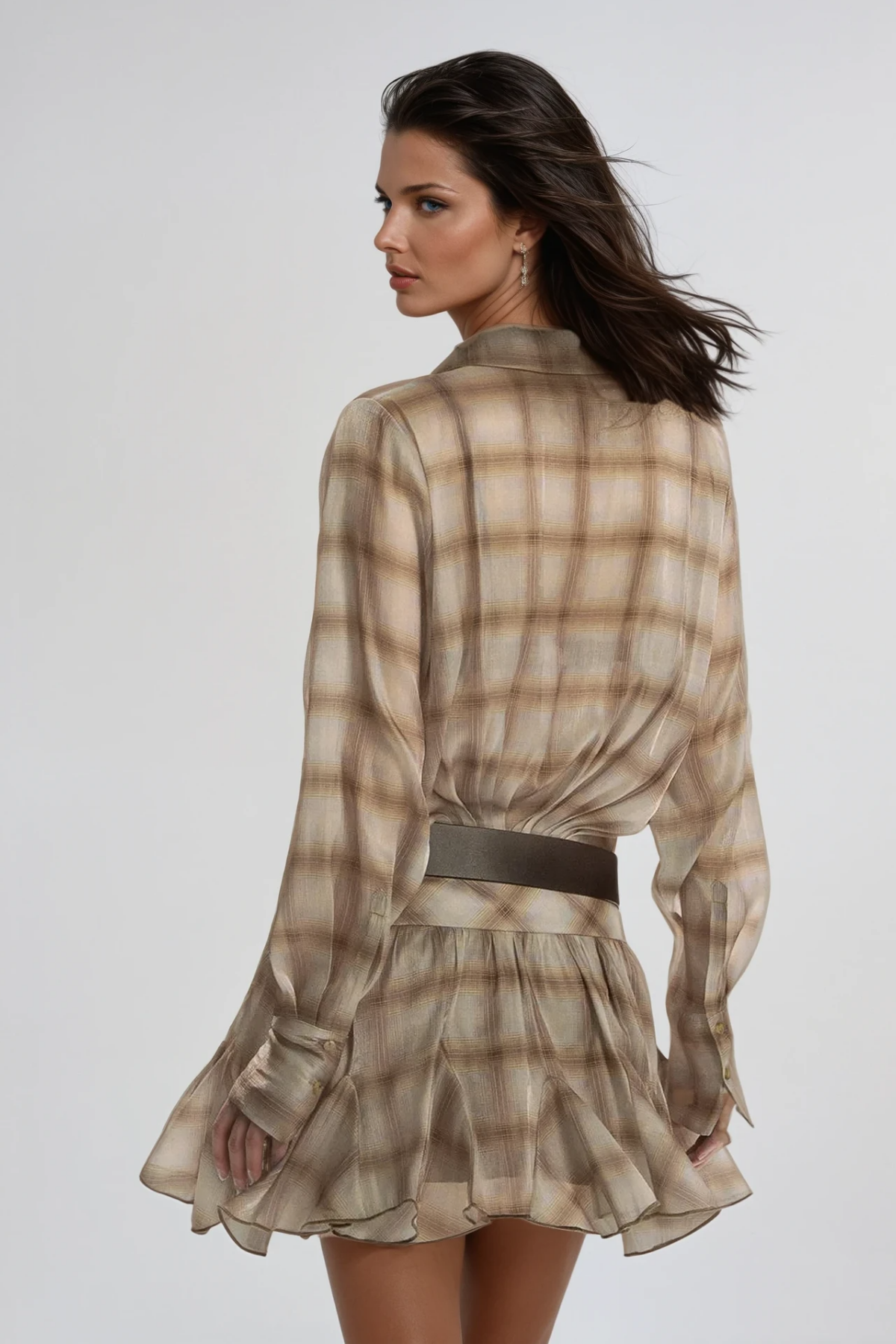 Introducing the Ardal Grid Mesh Ruffle Ruch Mini Dress - the perfect combination of modern and romantic. Made with breathable fabric and detailed with grid mesh and ruffle ruching, this dress is both stylish and comfortable. Perfect for any occasion, elevate your wardrobe with this stunning dress.