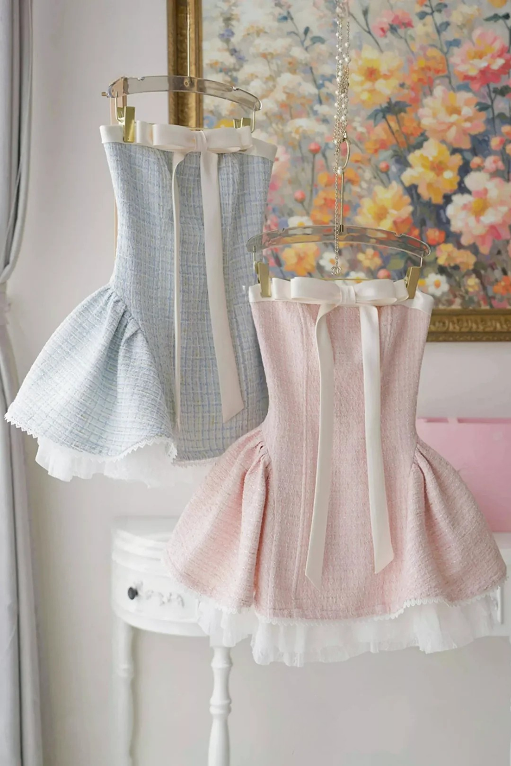 Elevate your occasion wear with this sophisticated tweed bow mini dress in a refined blue palette. Crafted from quality tweed fabric, this piece combines timeless texture with contemporary silhouette. The signature bow detail adds a polished, feminine accent that transitions seamlessly from daytime events to evening gatherings. The mini length offers modern versatility, while the structured tweed construction ensures lasting wear. Perfect for those who appreciate understated elegance and classic design elements with a contemporary twist.