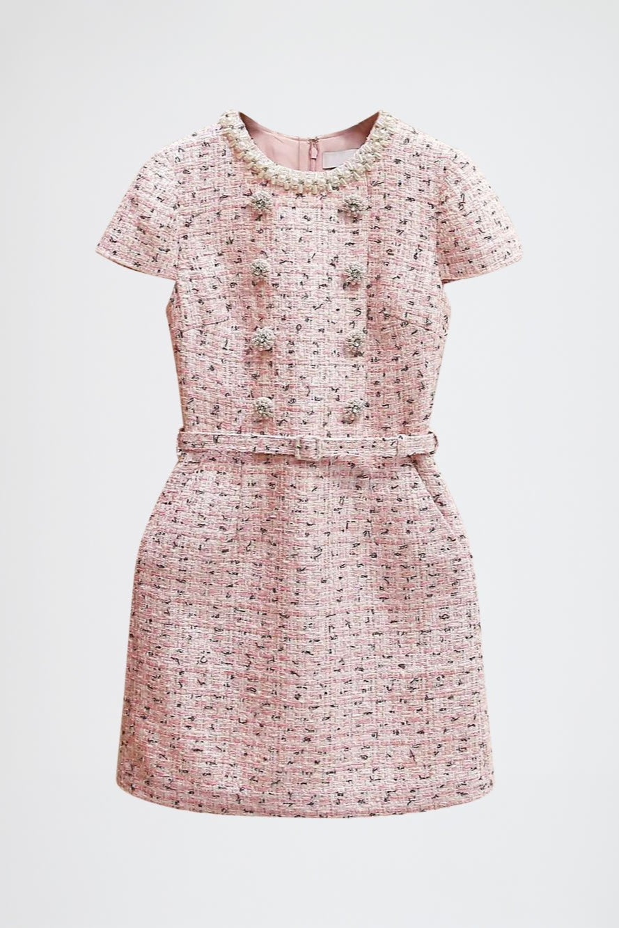 Clara Pearl Belted Mini Dress - Pink / XS is backordered and will ship as soon as it is back in stock.