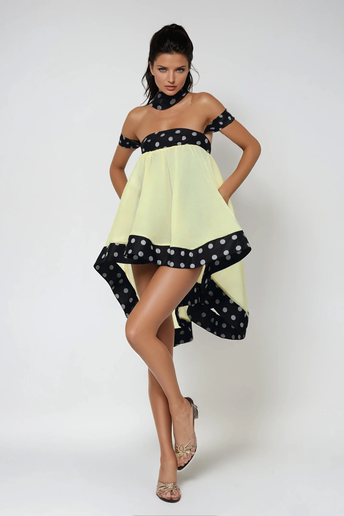 Dewey Off Shoulder Dot Asymmetric Mini Dress – Ellalabel.com