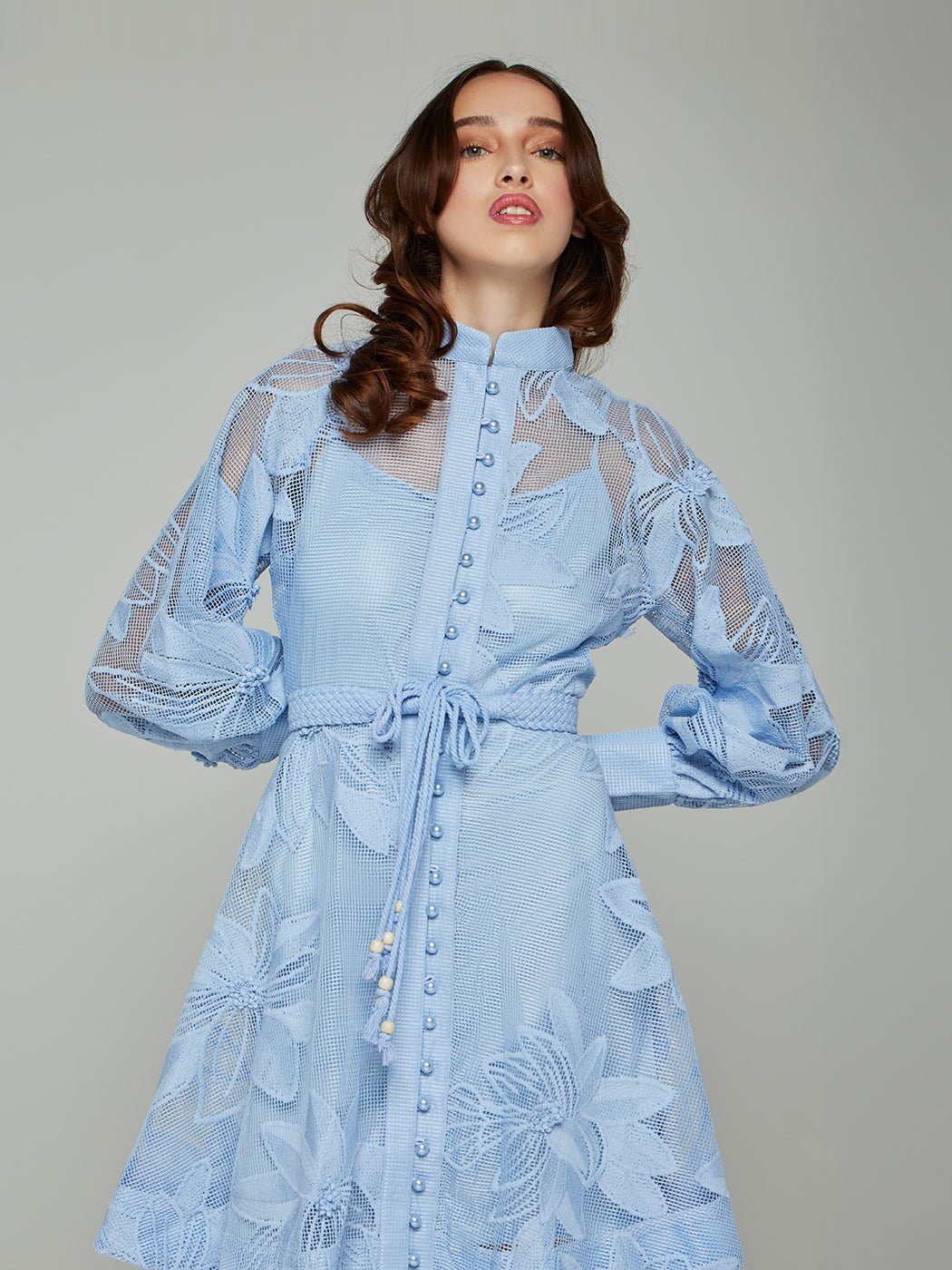 Tessie Mesh Applique Buttoned Mini Dress – Ellalabel.com