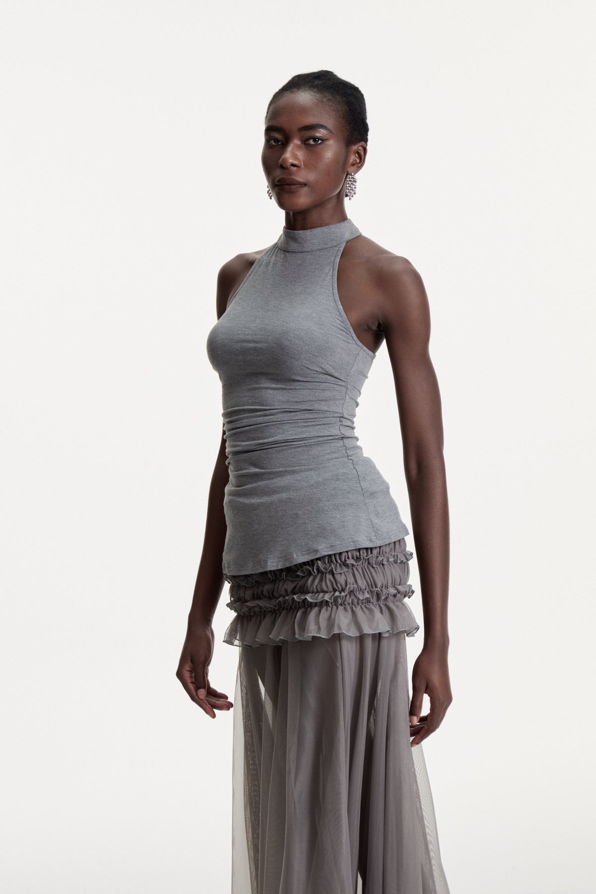 Elevate your wardrobe with the Concetta Halter Neck Ruched Top, expertly designed to combine elegance and comfort. The halter neckline accentuates the shoulders while the ruched detailing adds texture and shape, flattering a variety of body types. Crafted for a refined fit, this top is perfect for both sophisticated daytime looks and chic evening outings. Its versatile silhouette pairs seamlessly with tailored pants or skirts, making it a must-have statement piece for any fashion-forward collection.