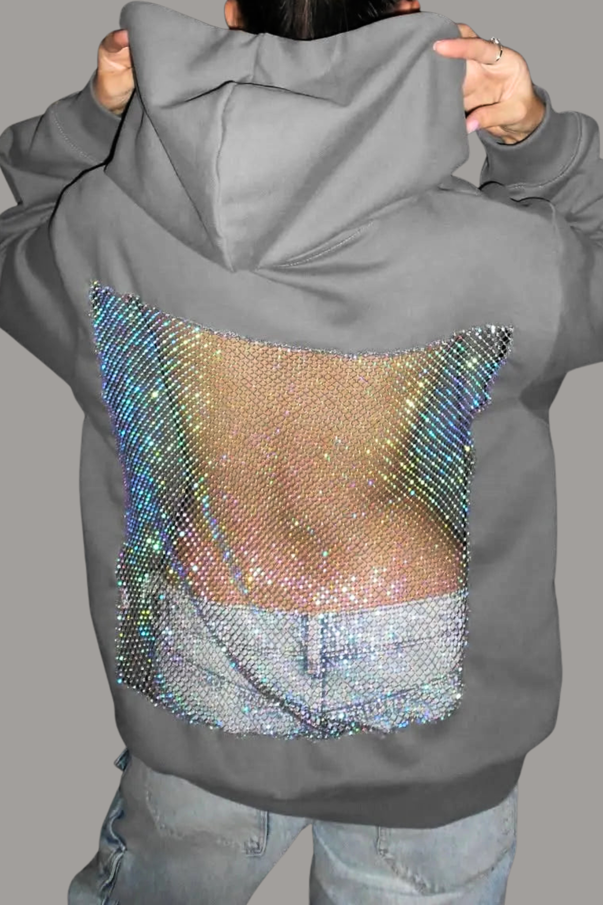The Dazhbog Hooded Rhinestone Mesh Top in Grey offers a sophisticated blend of sport-inspired design and elegant detailing. Made from lightweight, breathable mesh fabric, it provides all-day comfort with a subtle sheer effect. Rhinestone accents add a refined sparkle, enhancing its versatile appeal. The hood lends a casual edge, perfect for layering or making a statement on its own. Ideal for those who appreciate a delicate balance between urban style and luxurious accents.