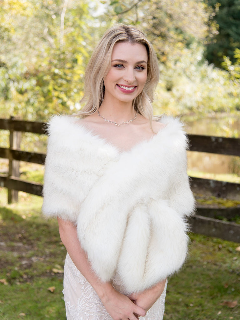Beautiful faux fur wrap made of luxurious and soft faux fur. It is the high imitation of the real fox fur. Fully lined with soft and warm fleece lining. It's perfect for wedding or other special occasions.
