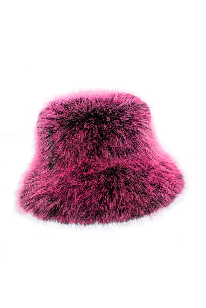 Pink black two tone faux fur bucket hat is backordered and will ship as soon as it is back in stock.