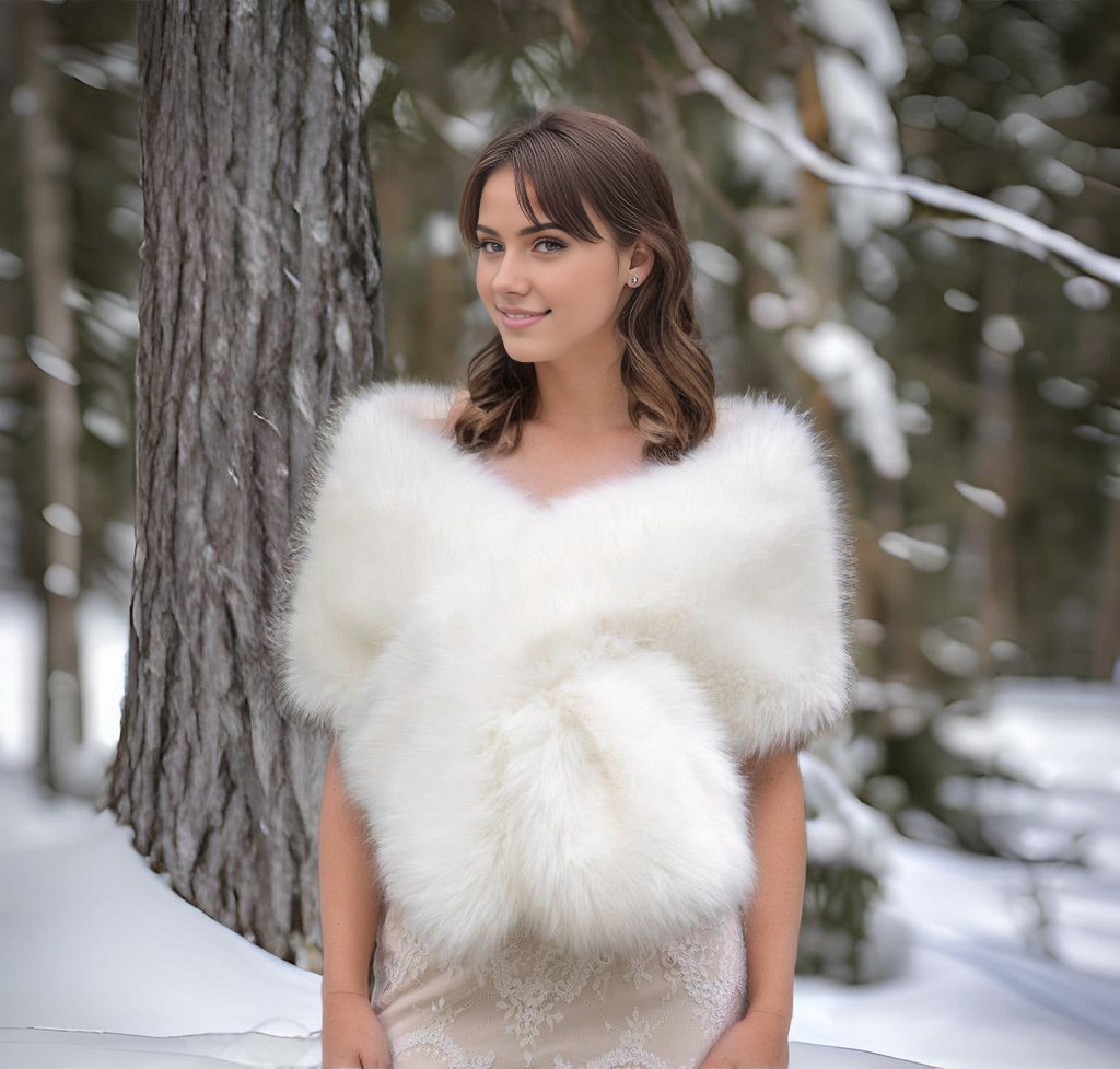 Pure ivory faux fur shawl bridal wrap wedding stole – Ellalabel.com