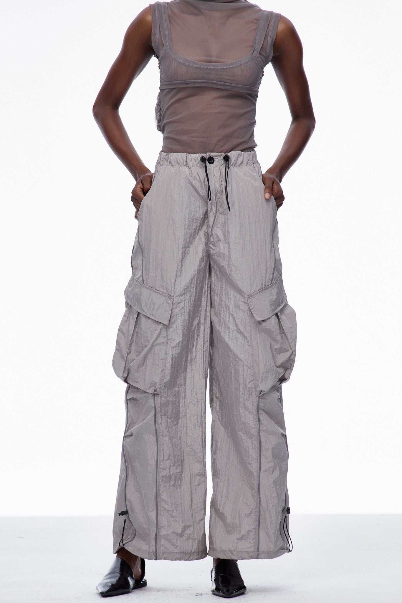 Calogero Ruch Drawstring Pants in Grey combine refined tailoring with practical comfort. Crafted from high-quality fabric, these pants feature a ruched design and an adjustable drawstring waist for a personalized fit. Their versatile grey tone makes them suitable for both casual and semi-formal occasions, offering a sophisticated yet relaxed silhouette. Ideal for those seeking style without compromising on ease of wear.