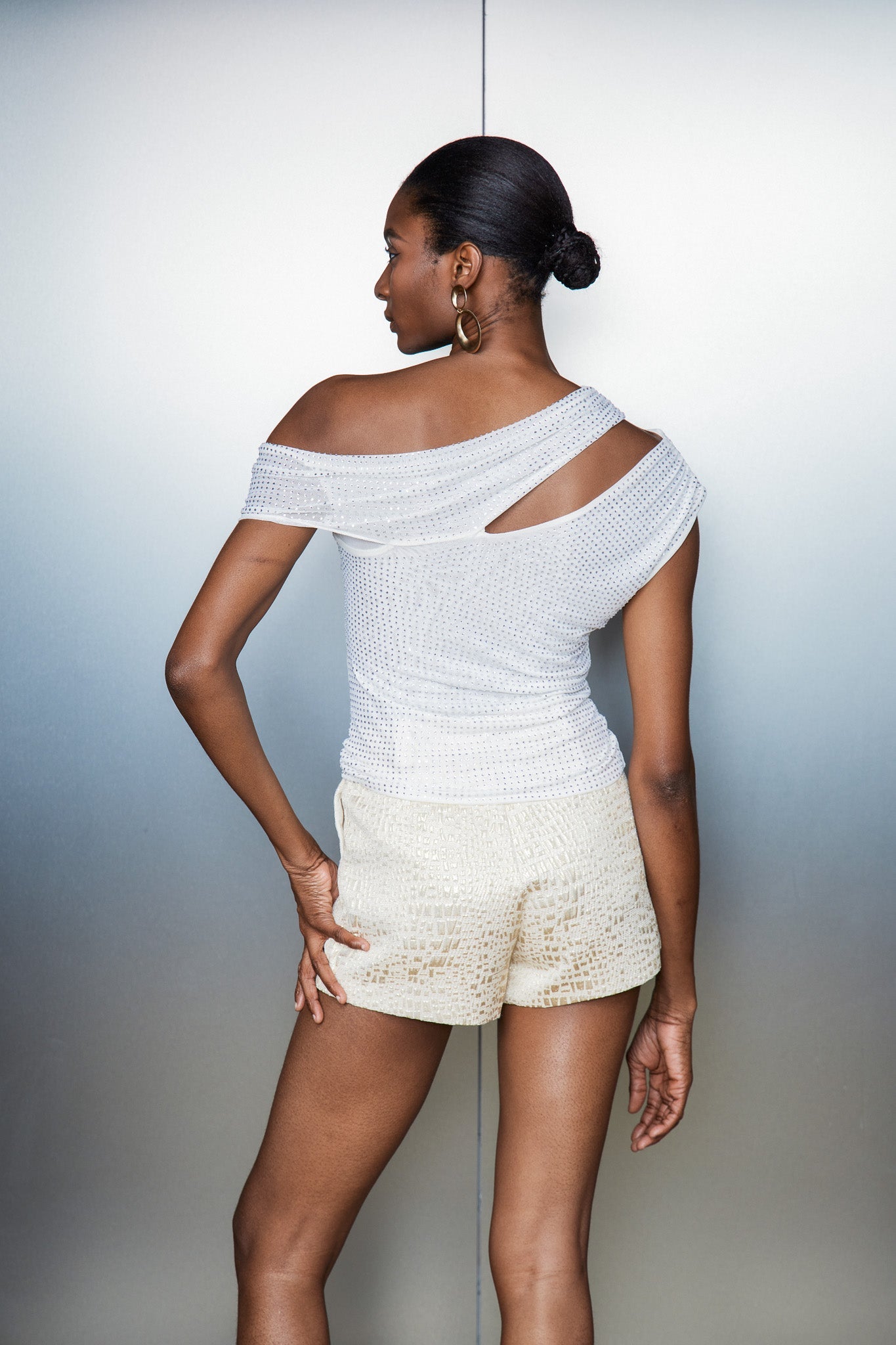 Cassy Rhinestone Asymmetric Cutout Pants Set