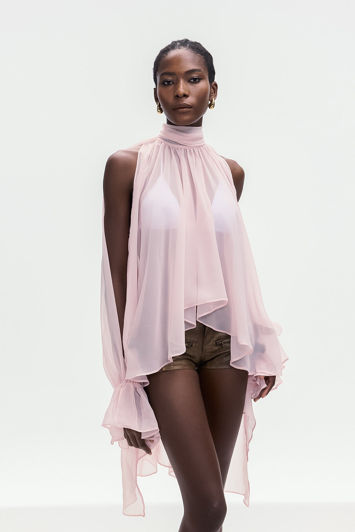 Elevate your wardrobe with the Bojidar Asymmetric Cutout Top in Pink, designed to blend contemporary style with sophisticated detailing. Its asymmetric silhouette and strategically placed cutouts create a striking visual appeal, while the soft pink hue adds a subtle yet confident touch. Perfect for fashion-forward individuals seeking a unique statement piece that balances elegance and edge.