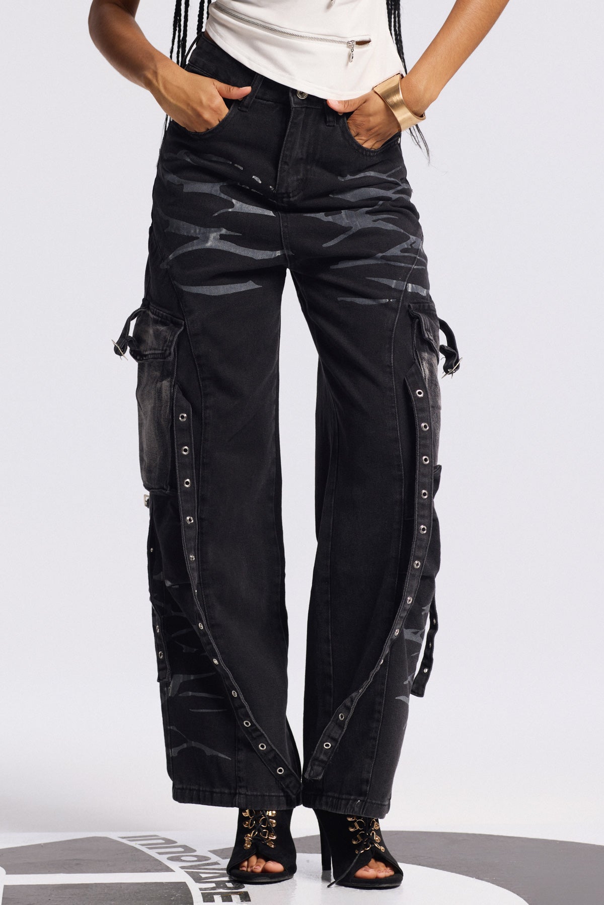 The Bithiah Print Pocket Jeans combine sophisticated design with practical functionality. Featuring distinctive printed pockets that elevate their visual appeal, these jeans are crafted from premium denim for exceptional durability and comfort. The tailored silhouette offers a flattering fit while maintaining flexibility for all-day wear. Perfect for creating versatile looks from casual to semi-formal occasions.